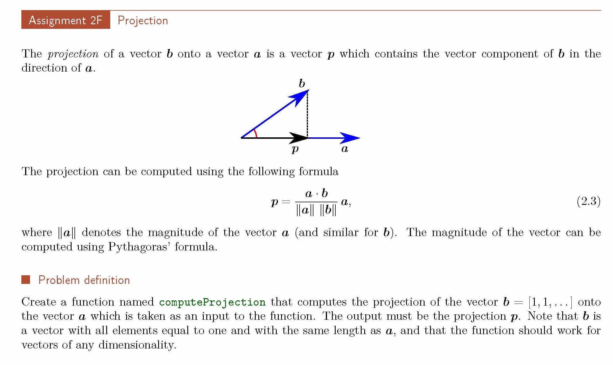 Assignment 2F Projection The projection of a vector b onto a vect...
