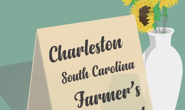Illustrate and design a flyer announcing the Charleston, SC Farmer'...