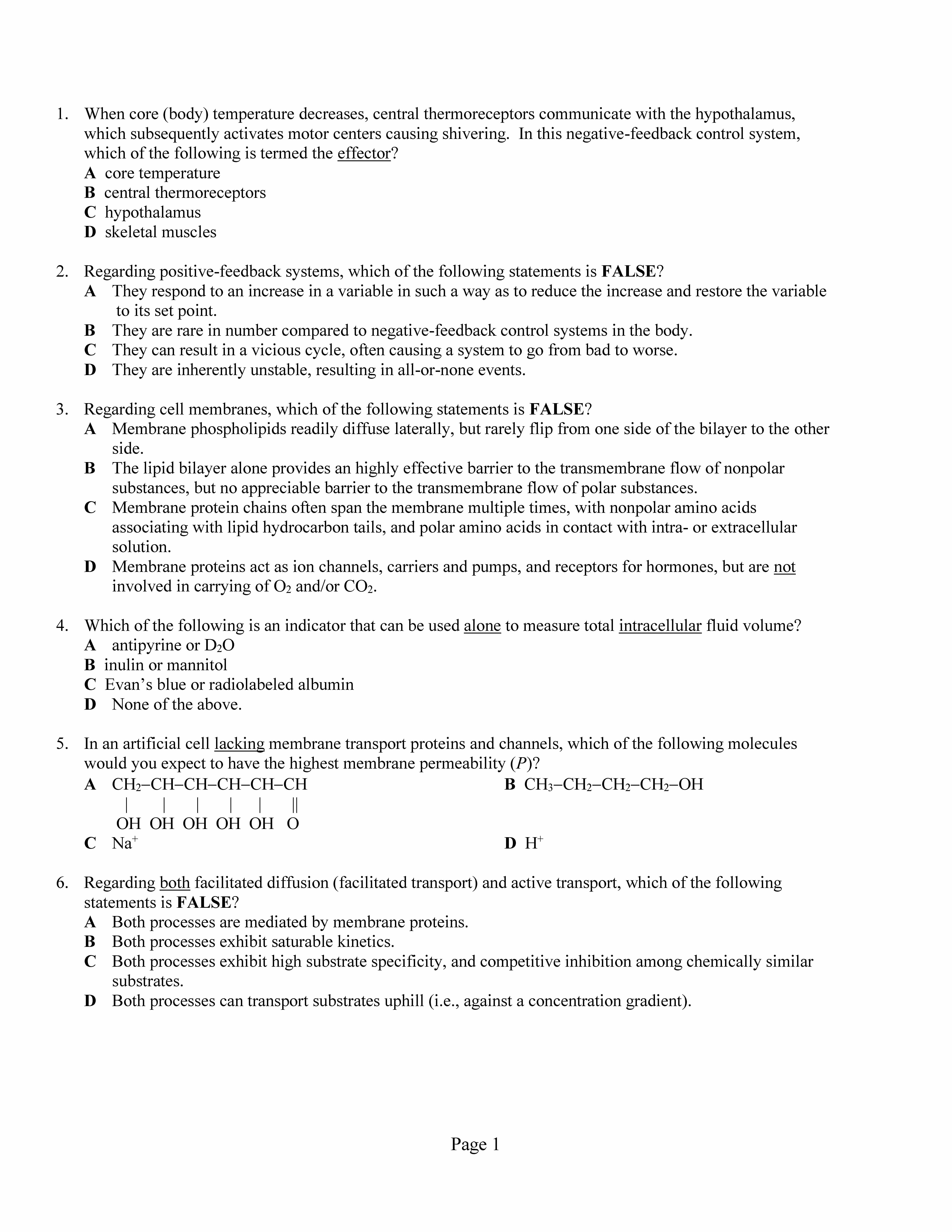 Page 1 1. When core (body) temperature decreases, central thermore...