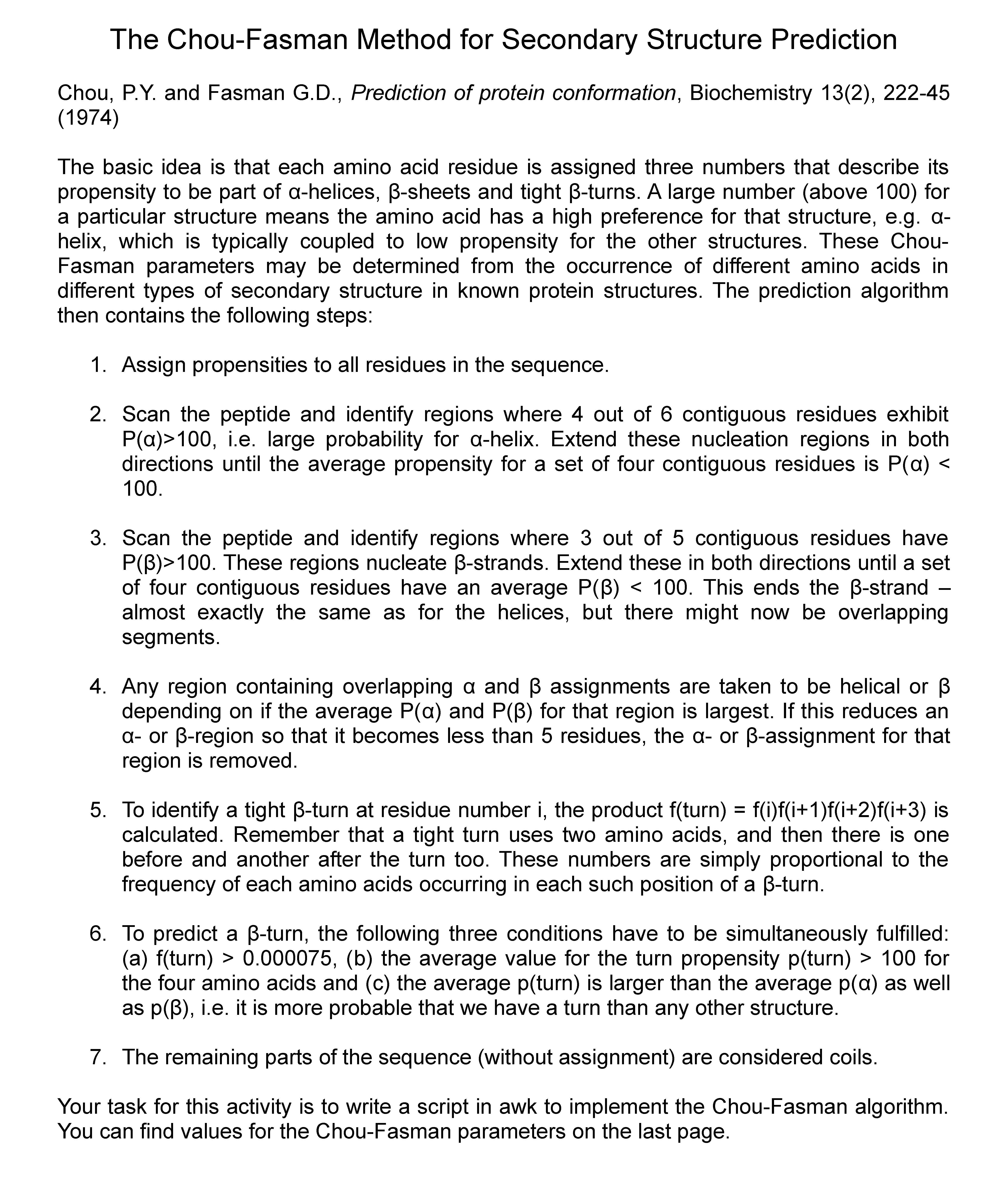 The Chou-Fasman Method for Secondary Structure Prediction Chou, P....