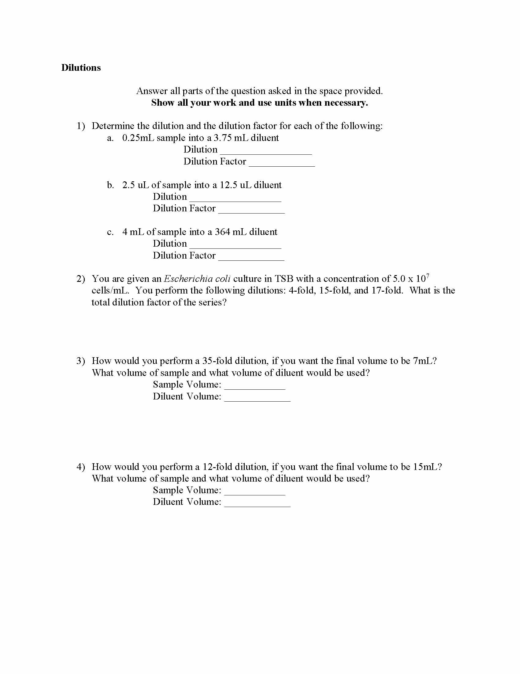 Dilutions Answer all parts of the question asked in the space prov...