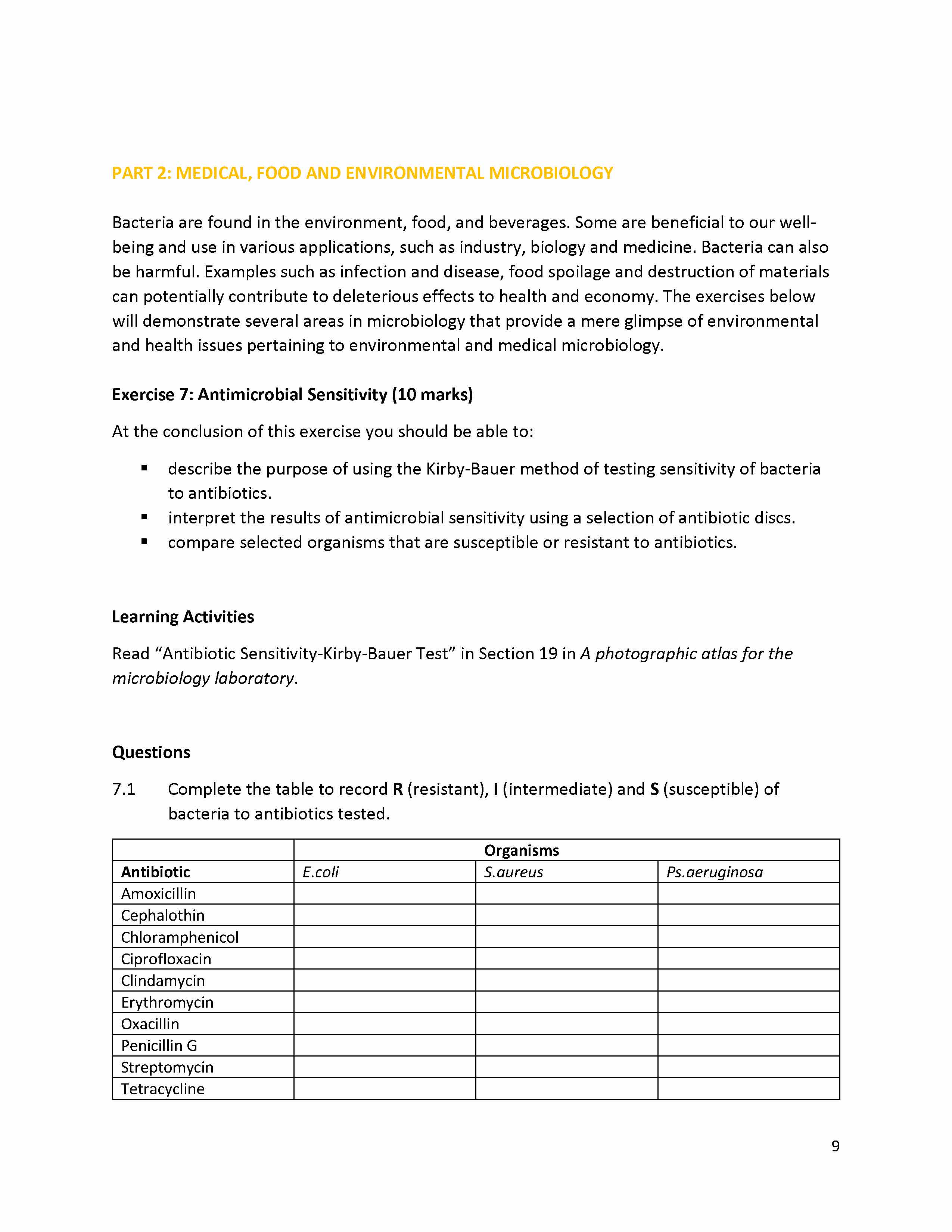 PART 1: UNDERSTANDING INTRODUCTORY LABORATORY PRACTICE Laboratory ...