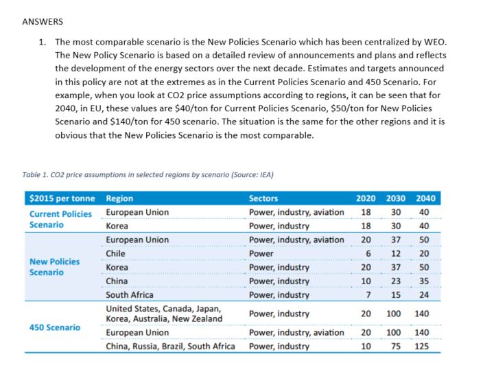 1. Based on your review of the EIA IEO, which IEA WEO scenario is m...