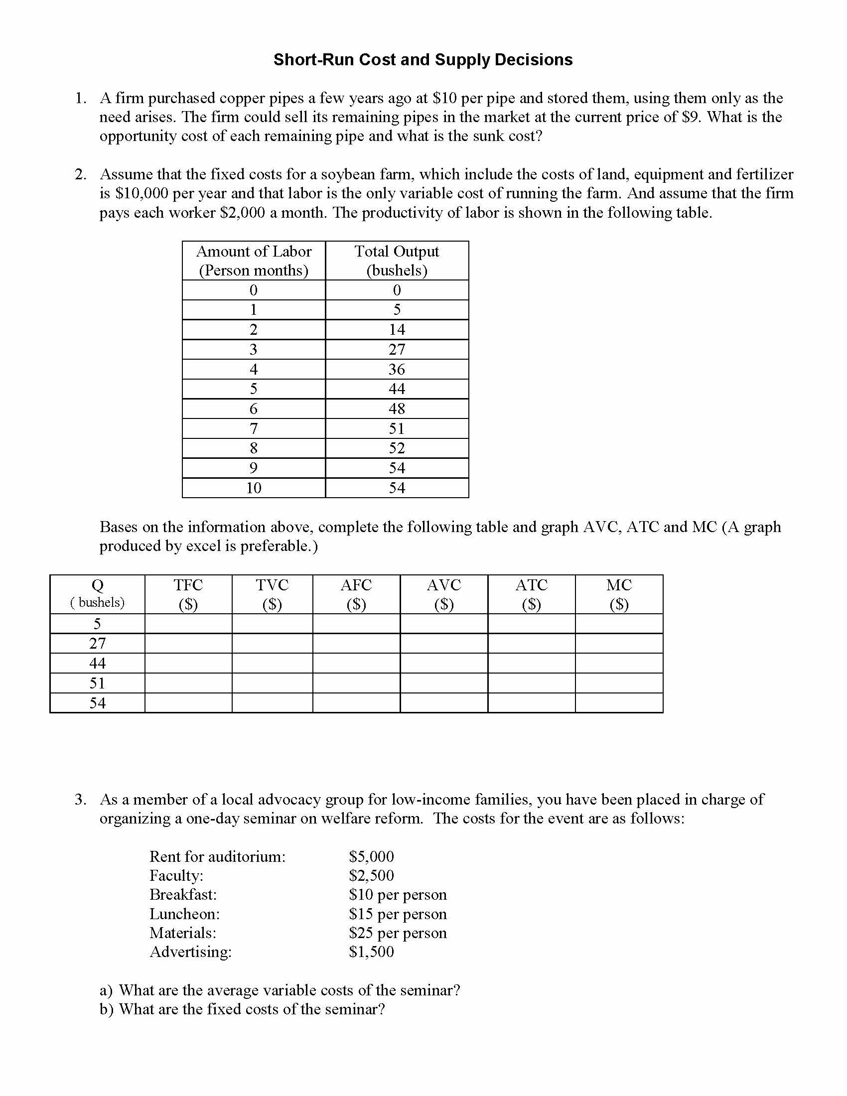 Short-Run Cost and Supply Decisions 1. A firm purchased copper pip...