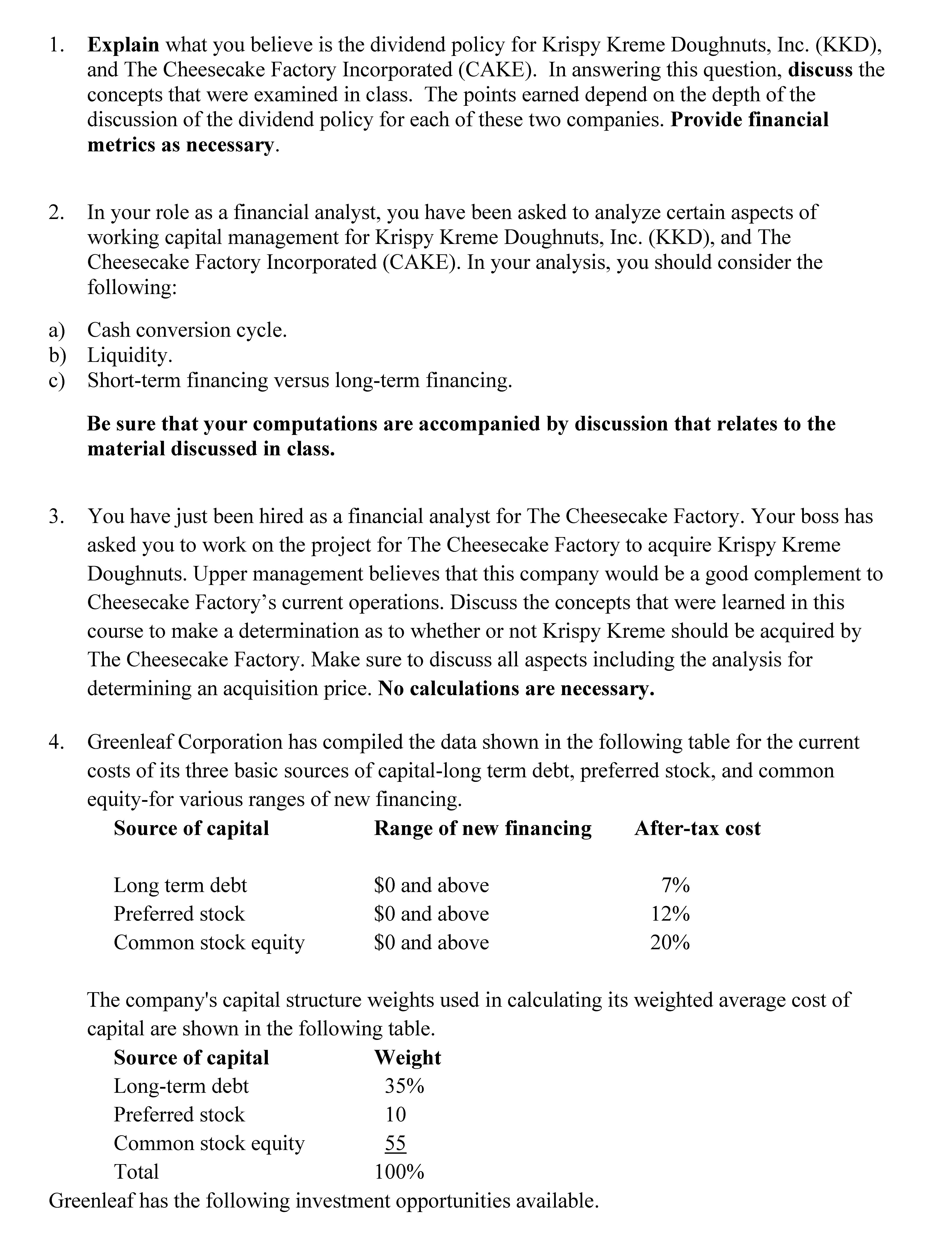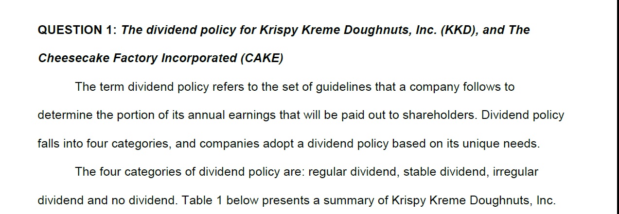 1. Explain what you believe is the dividend policy for Krispy Kreme...