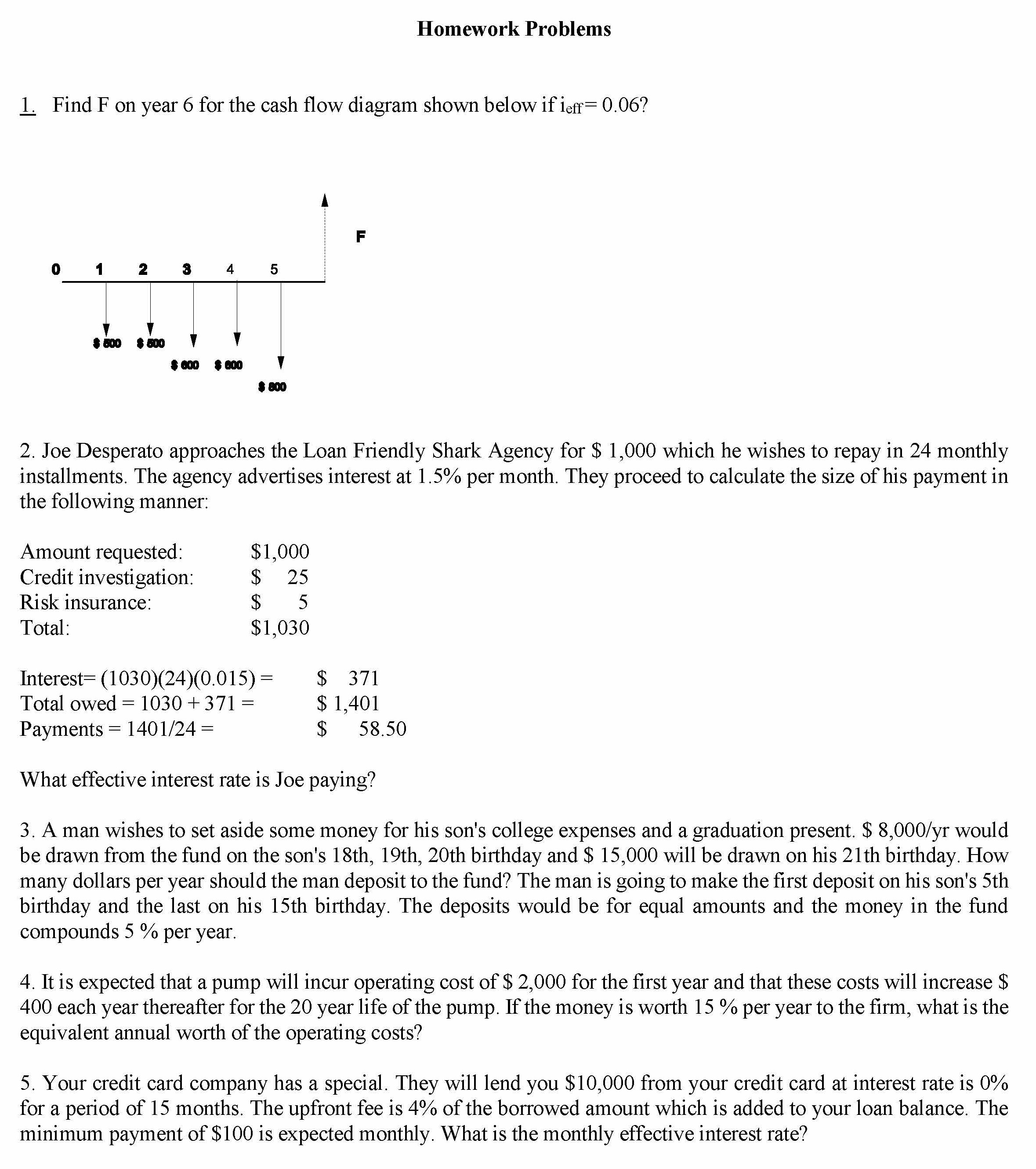 Homework Problems 1. Find F on year 6 for the cash flow diagram sh...