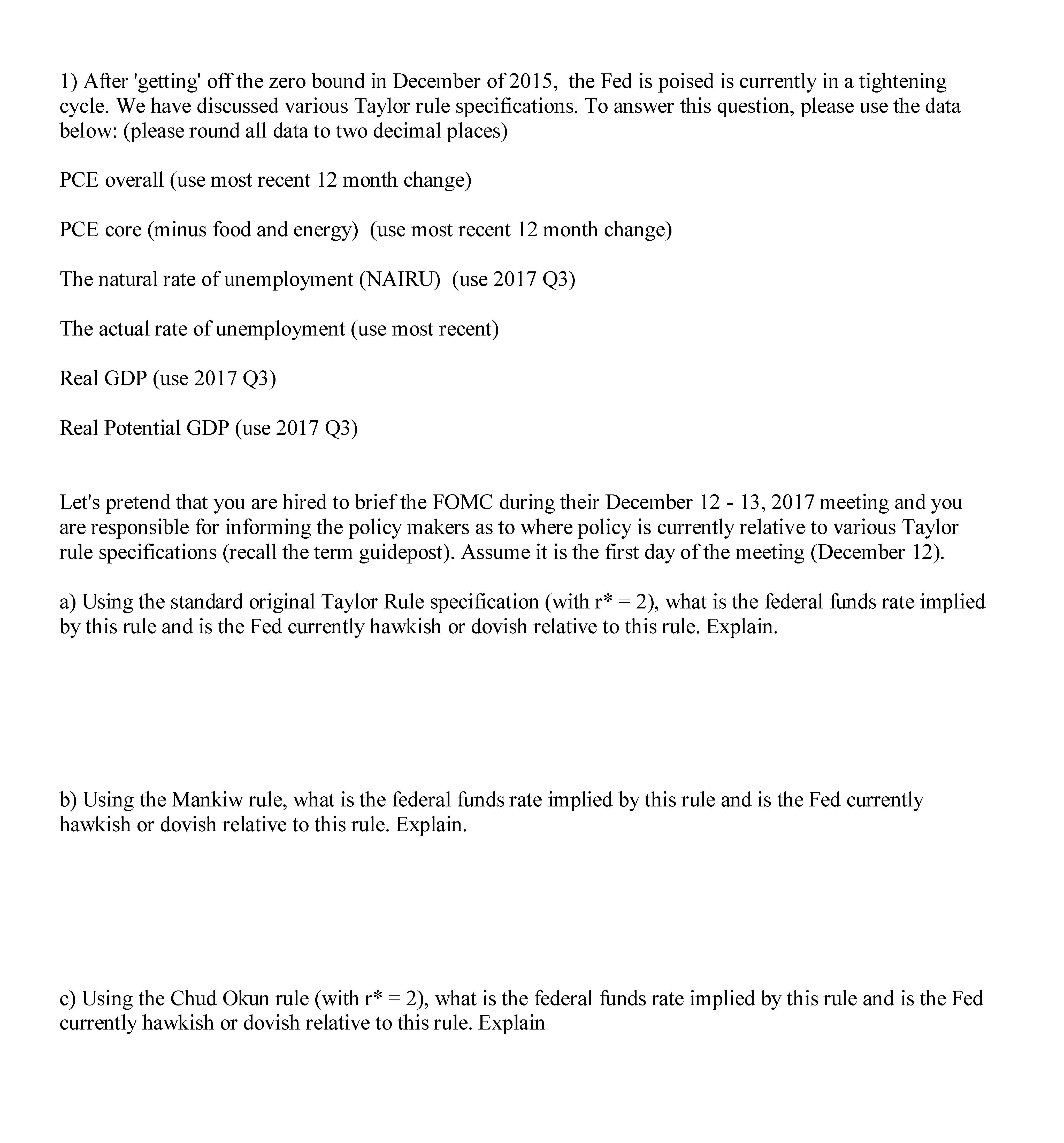 1) After 'getting' off the zero bound in December of 2015, the Fed ...