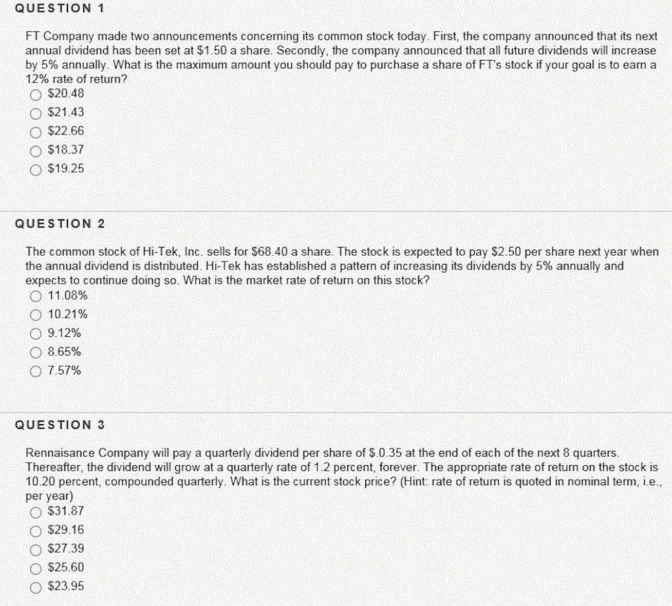 QUESTION 1 FT Company made two concerning its common stock today. ...