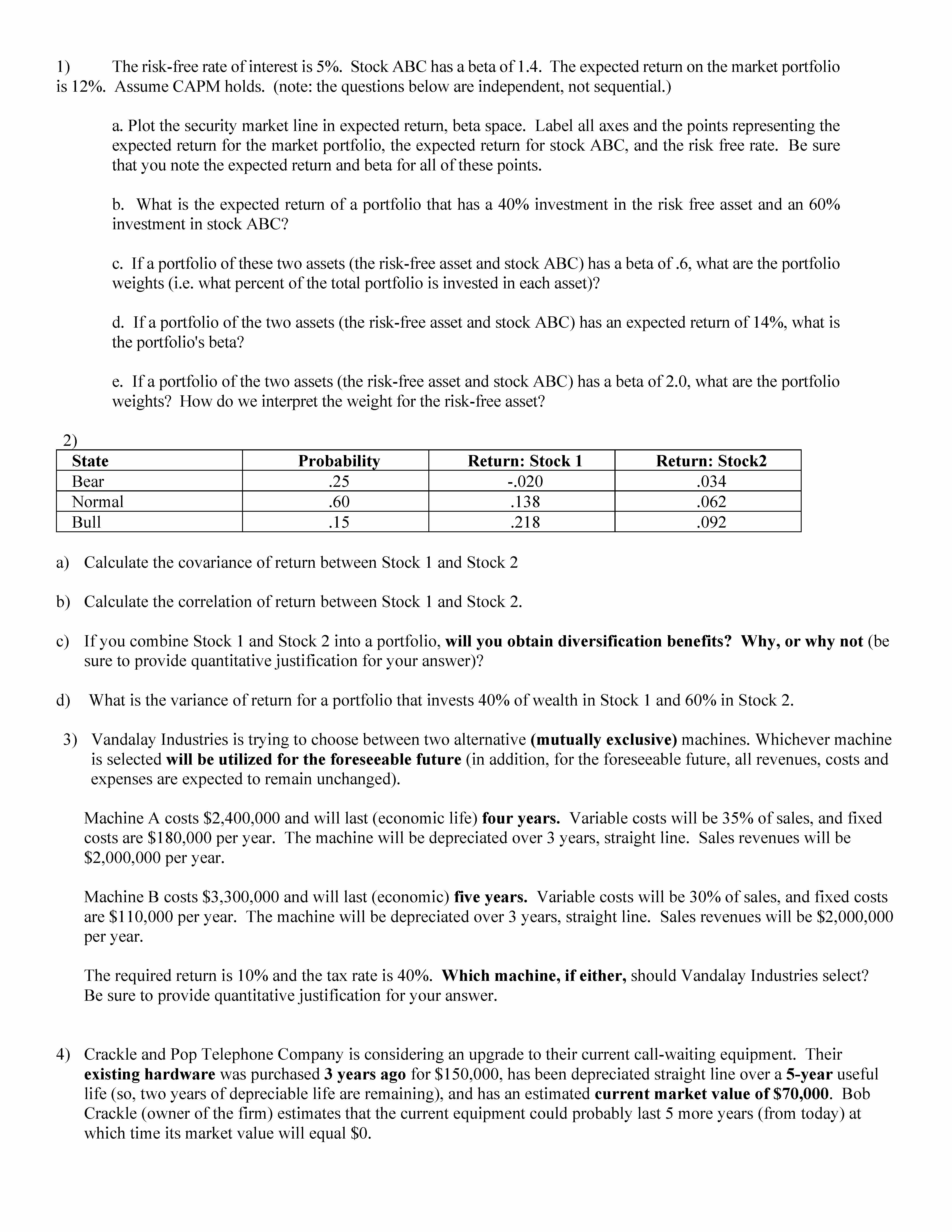 1) The risk-free rate of interest is 5%. Stock ABC has abeta of 1....