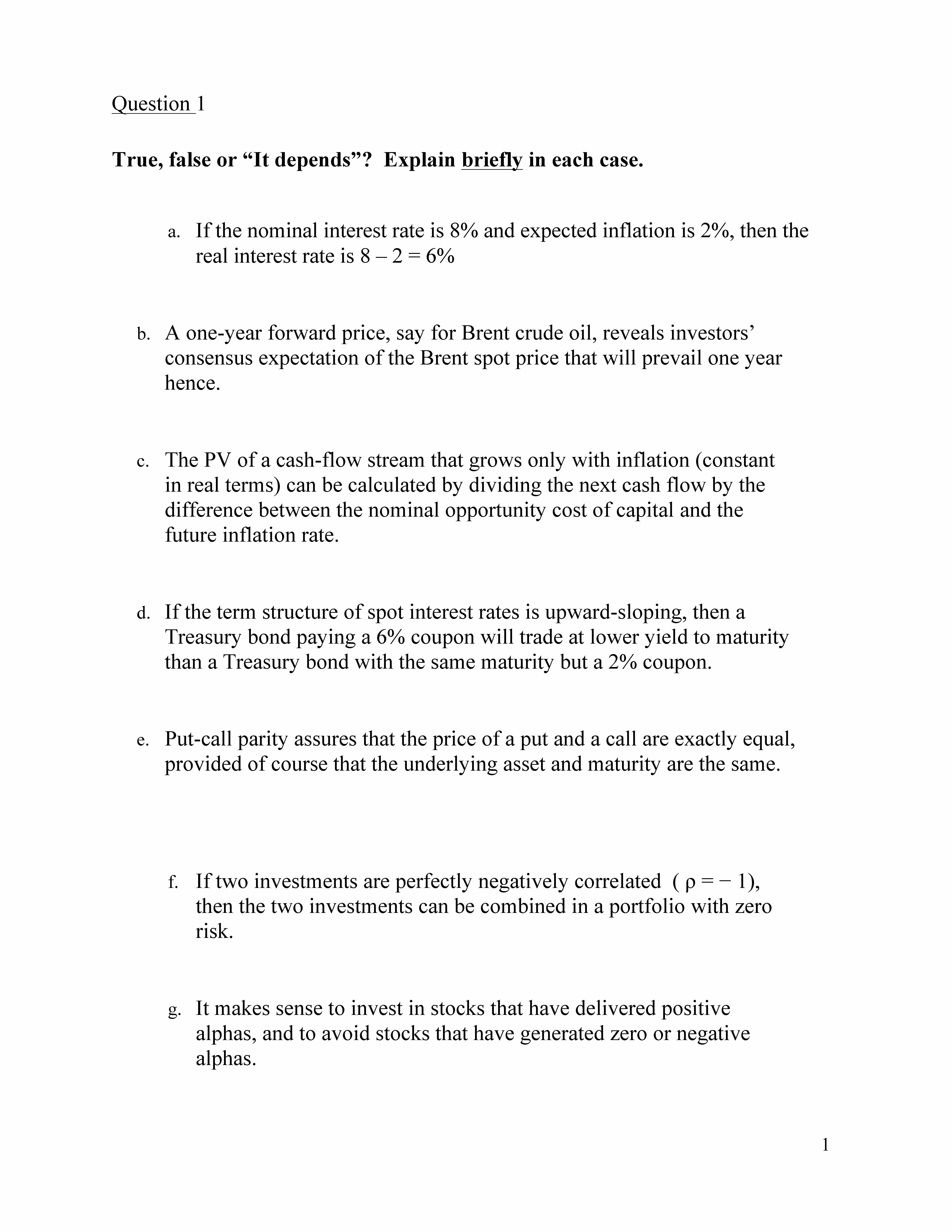 Question 1 True, false or “It depends� Explain briefly in eac...