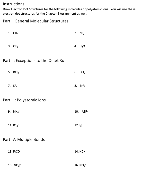 Instructions: Draw Electron Dot Structures for the following molec...