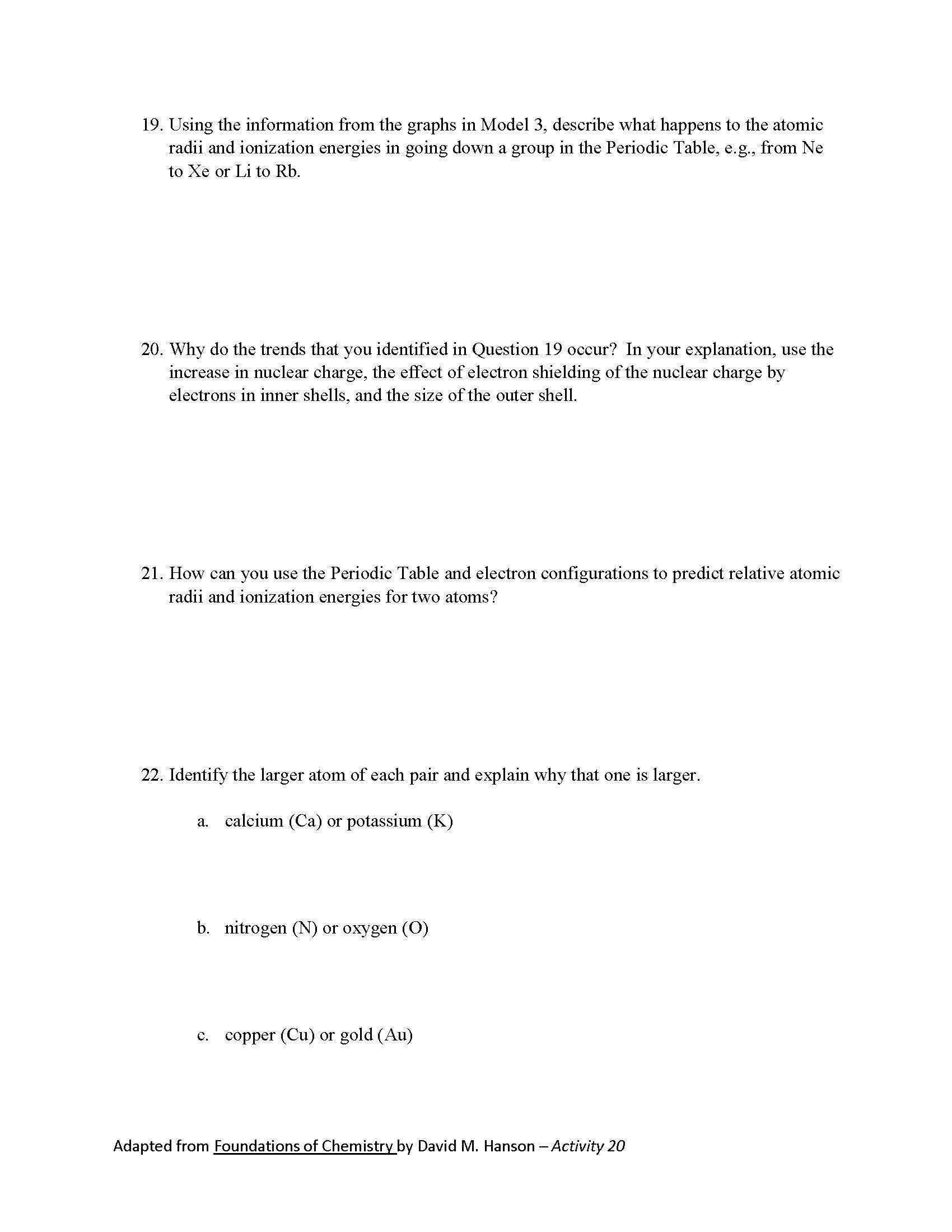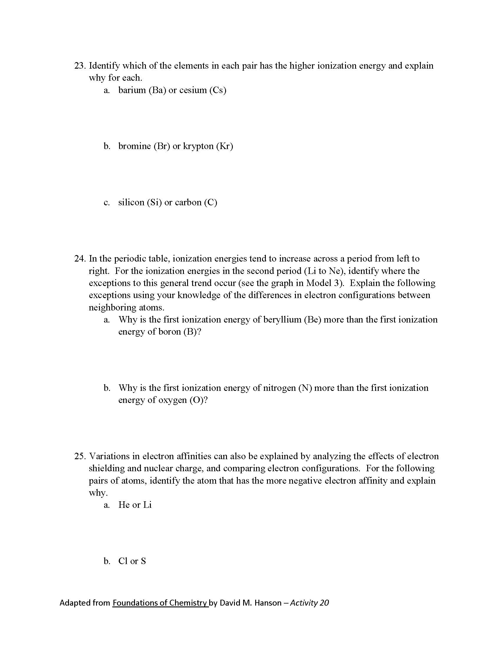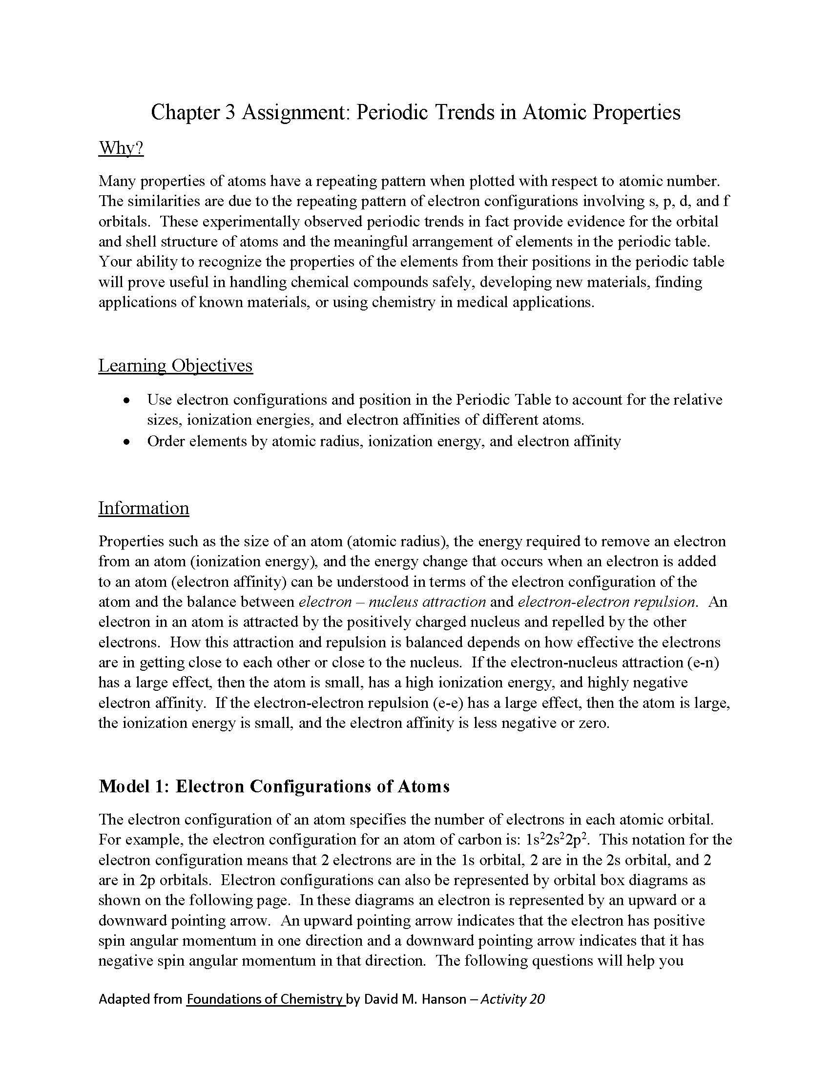 Chapter 3 Assignment: Periodic Trends in Atomic Properties Why? M...