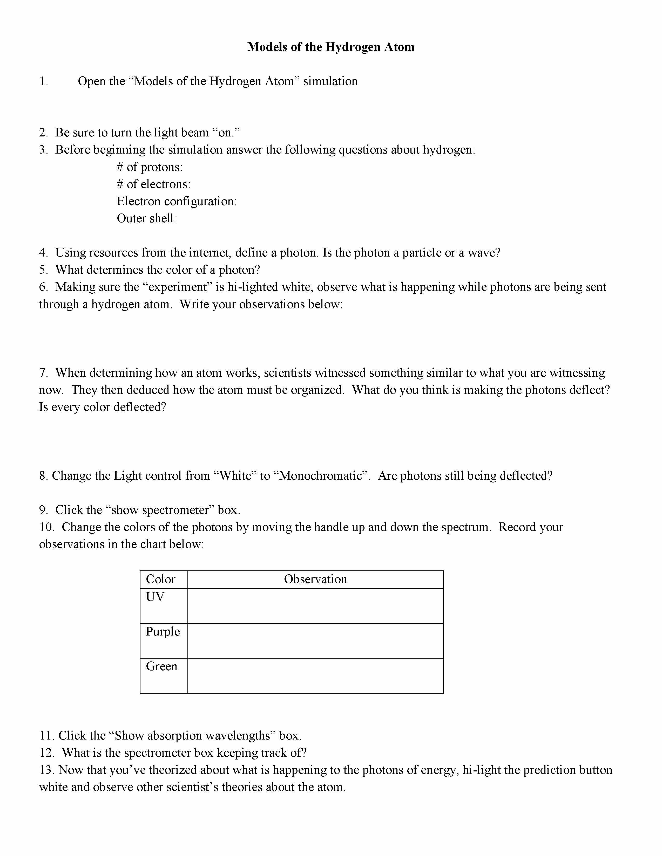 Models of the Hydrogen Atom 1. Open the “Models of the Hydrogen...