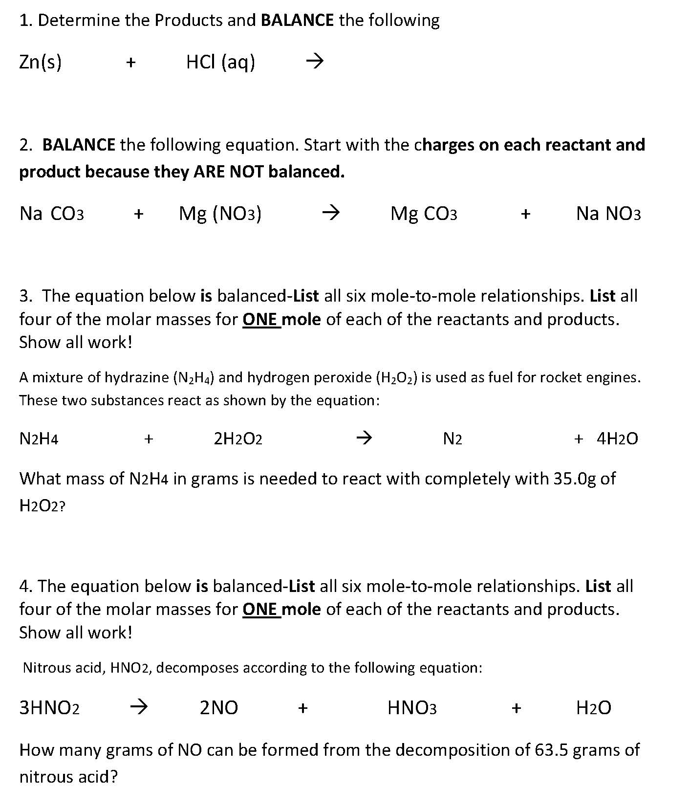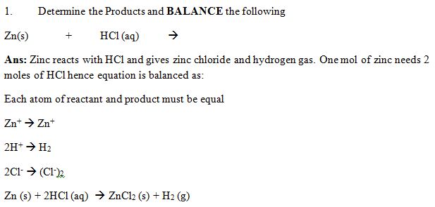 1. Determine the Products and BALANCE the following Zn(s) + HCl(aq)...