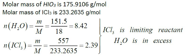 Calculate the maximum numbers of moles and grams of iodic acid (HIO...