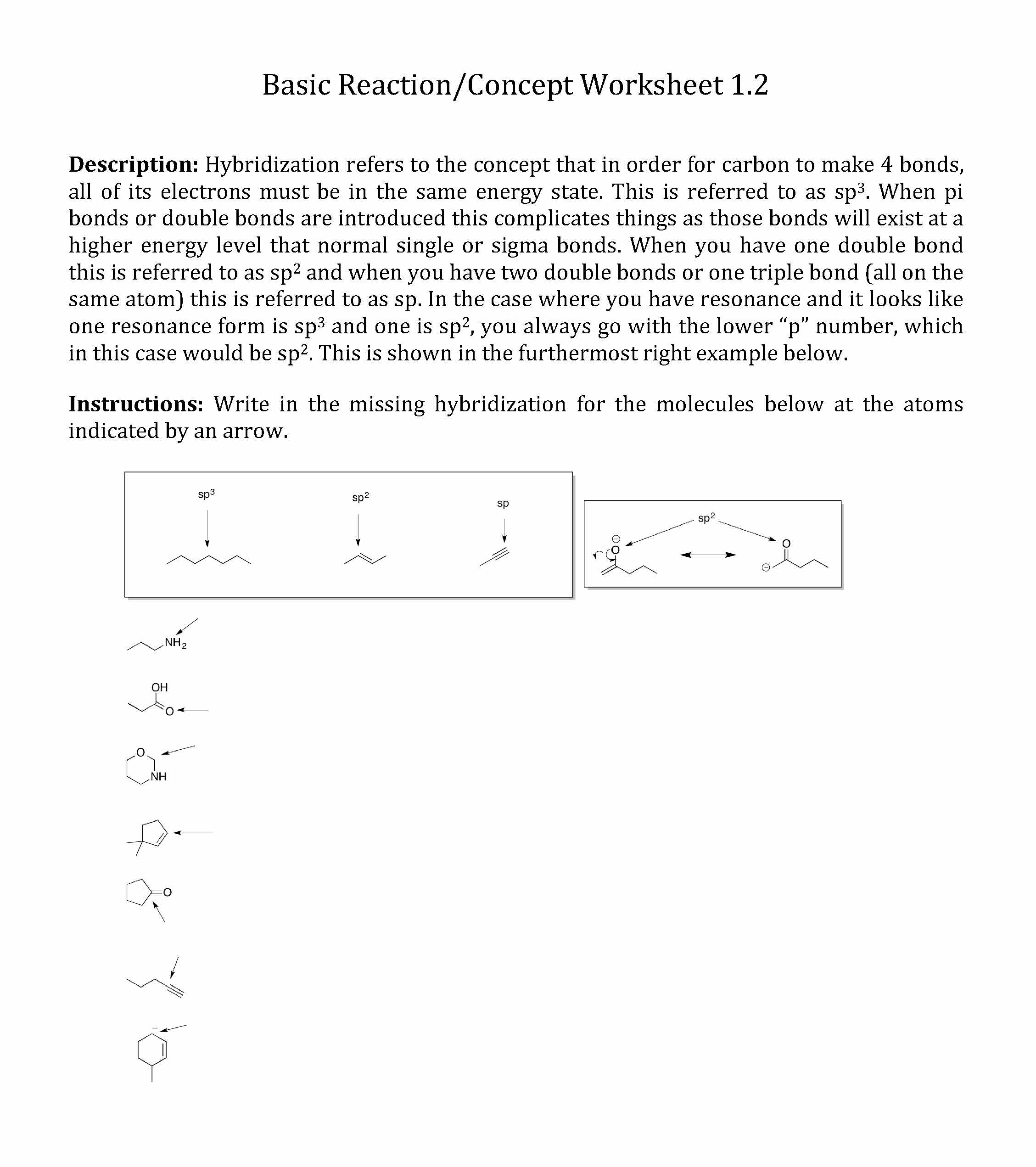 Basic action/Concept Worksheet 1.2 Description: Hybridization refe...