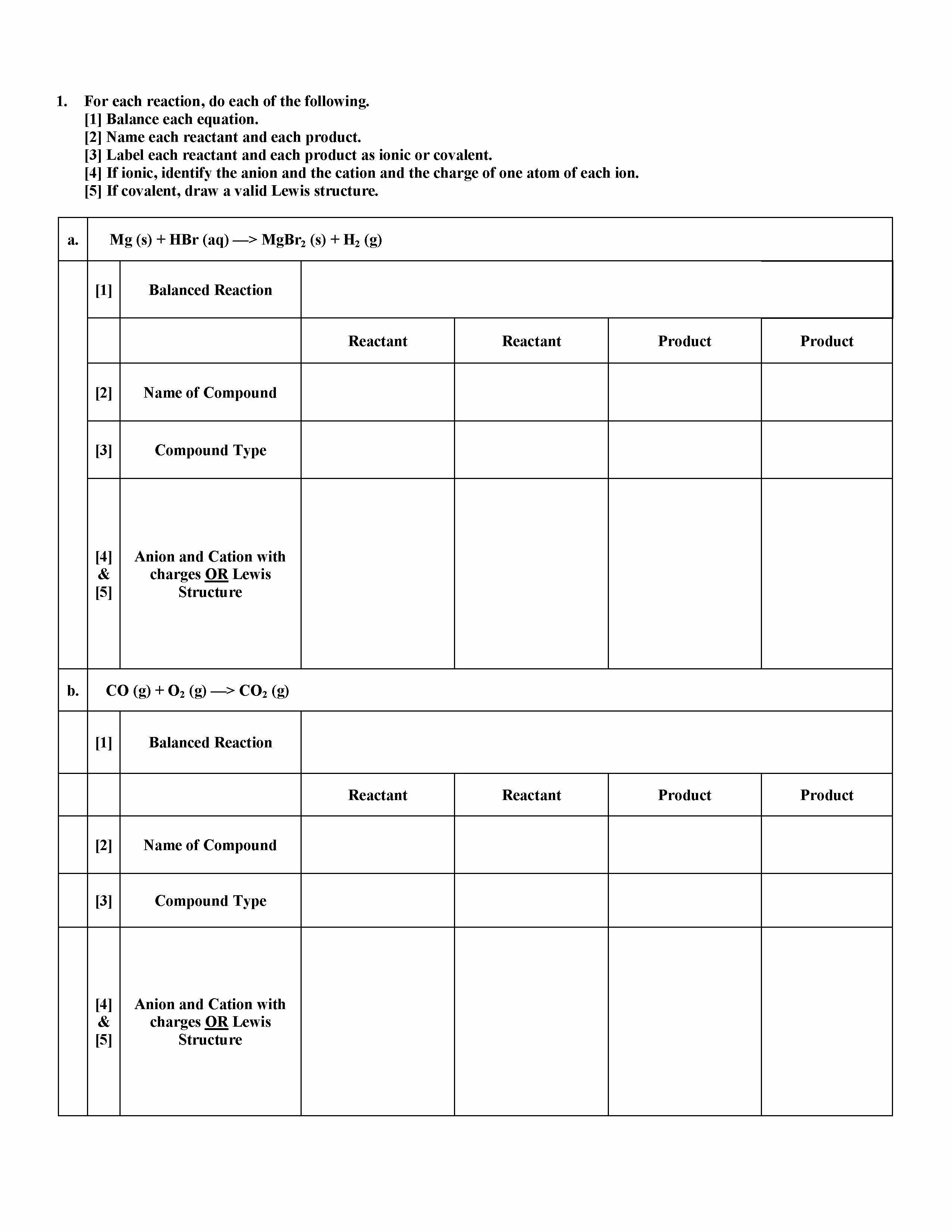 1. a. For each reaction, do each of the following. [1] Balance e...