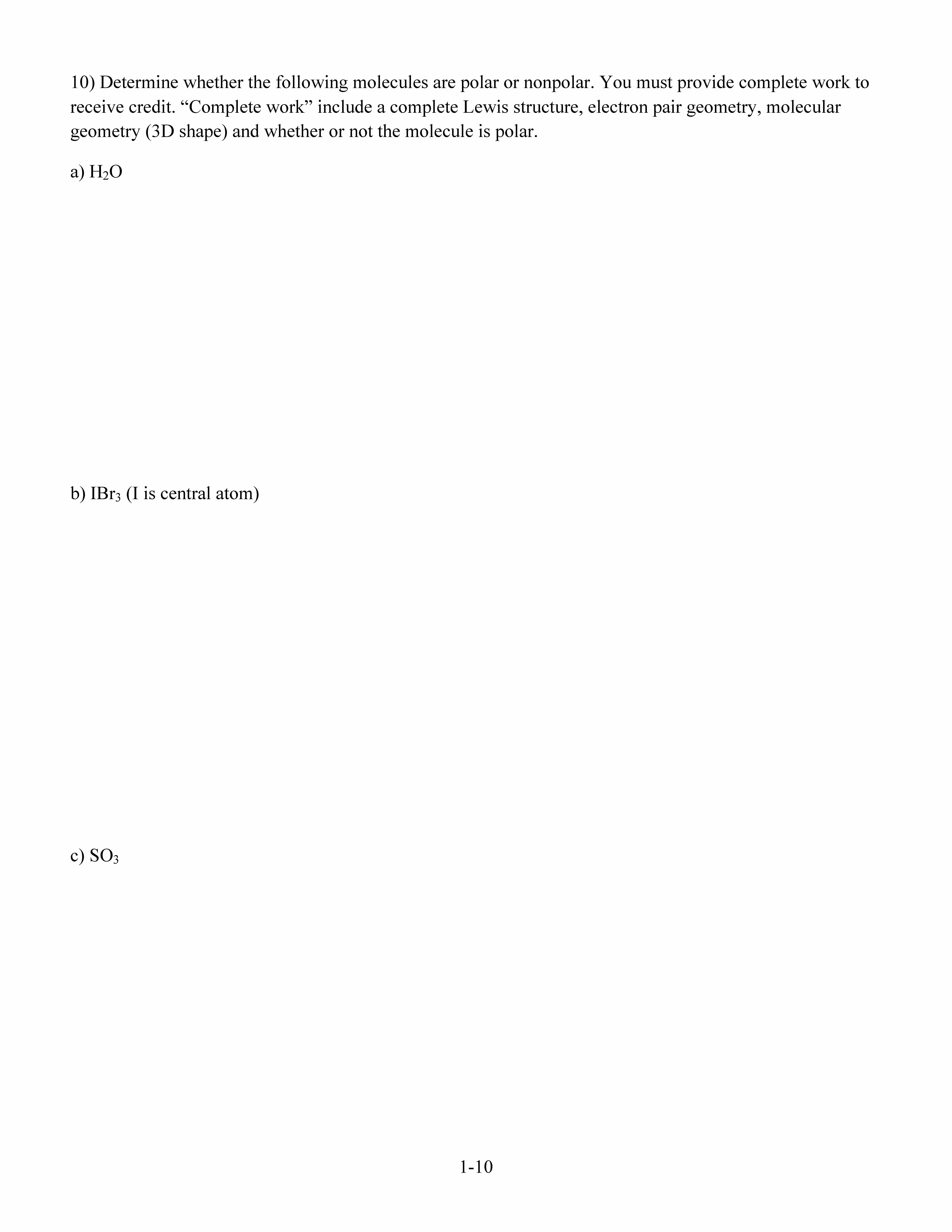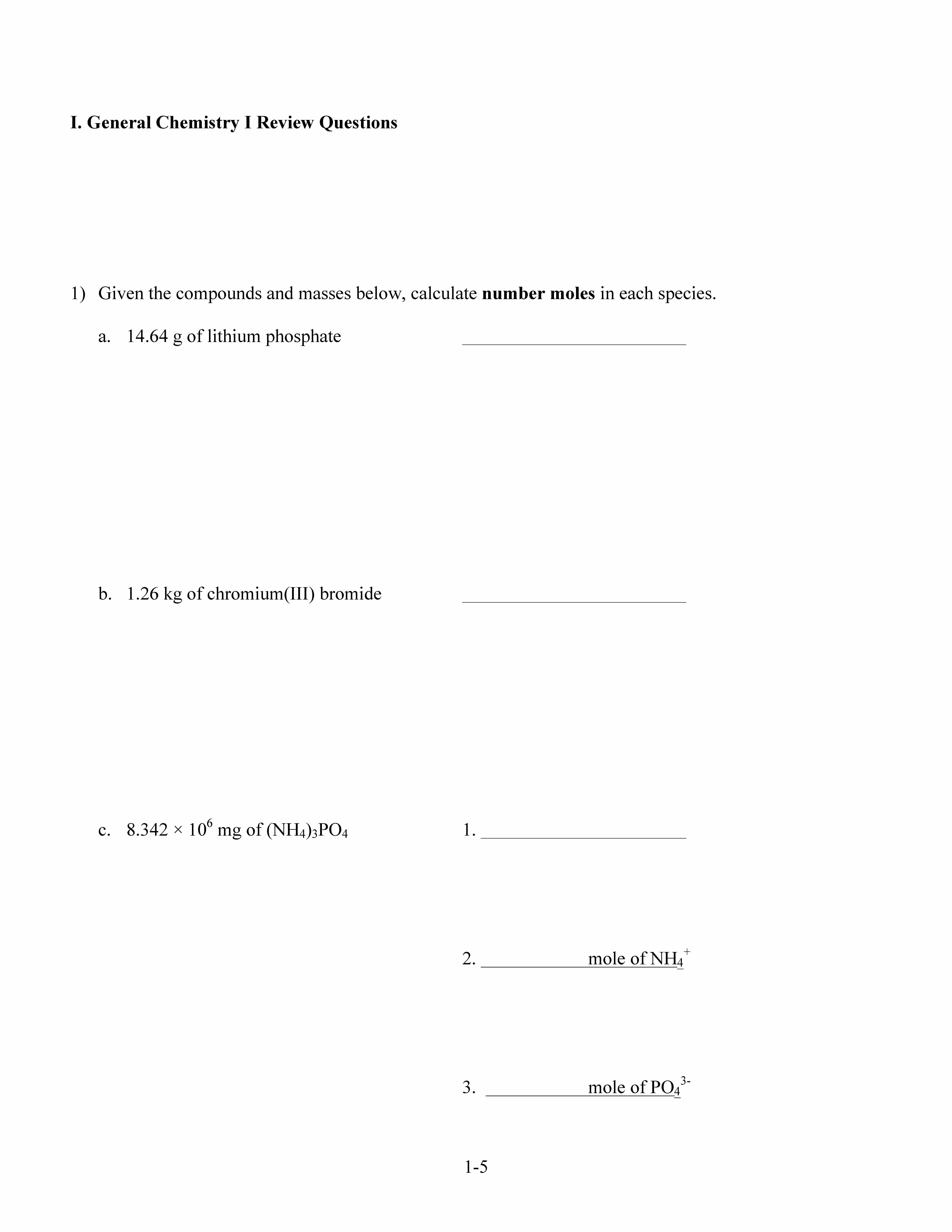 I. General Chemistry I Review Questions 1) Given the compounds and...