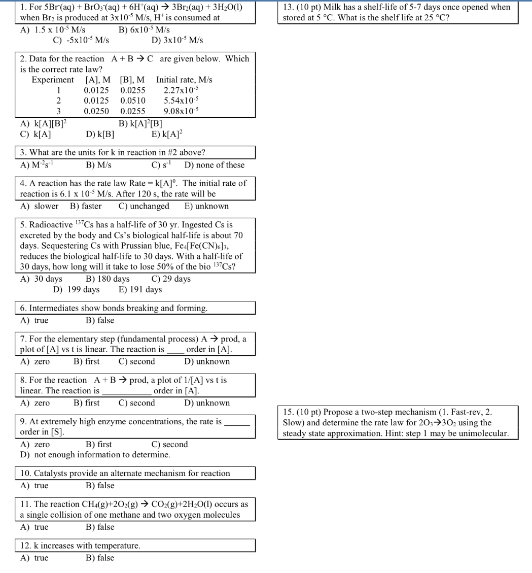 1. For 5Br(aq) BrO3(aq) + 6H (*(aq) > 3Br2(aq) 3H2O(l) 13. (10 ...