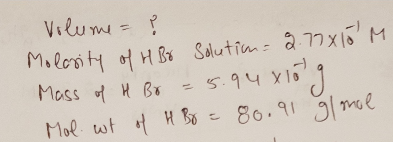 Calculate the volume of 2.77×10-1-M HBr solution needed to prov...