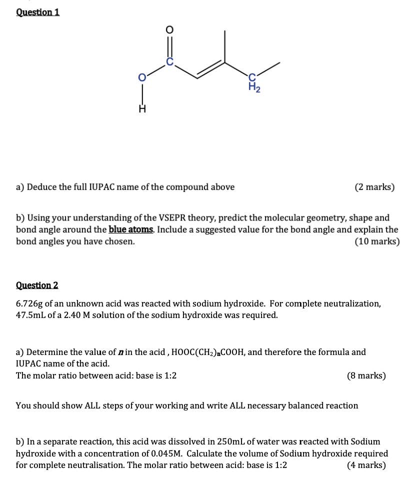 Question 1 o C O C H2 H a) Deduce the full IUPAC name of the...