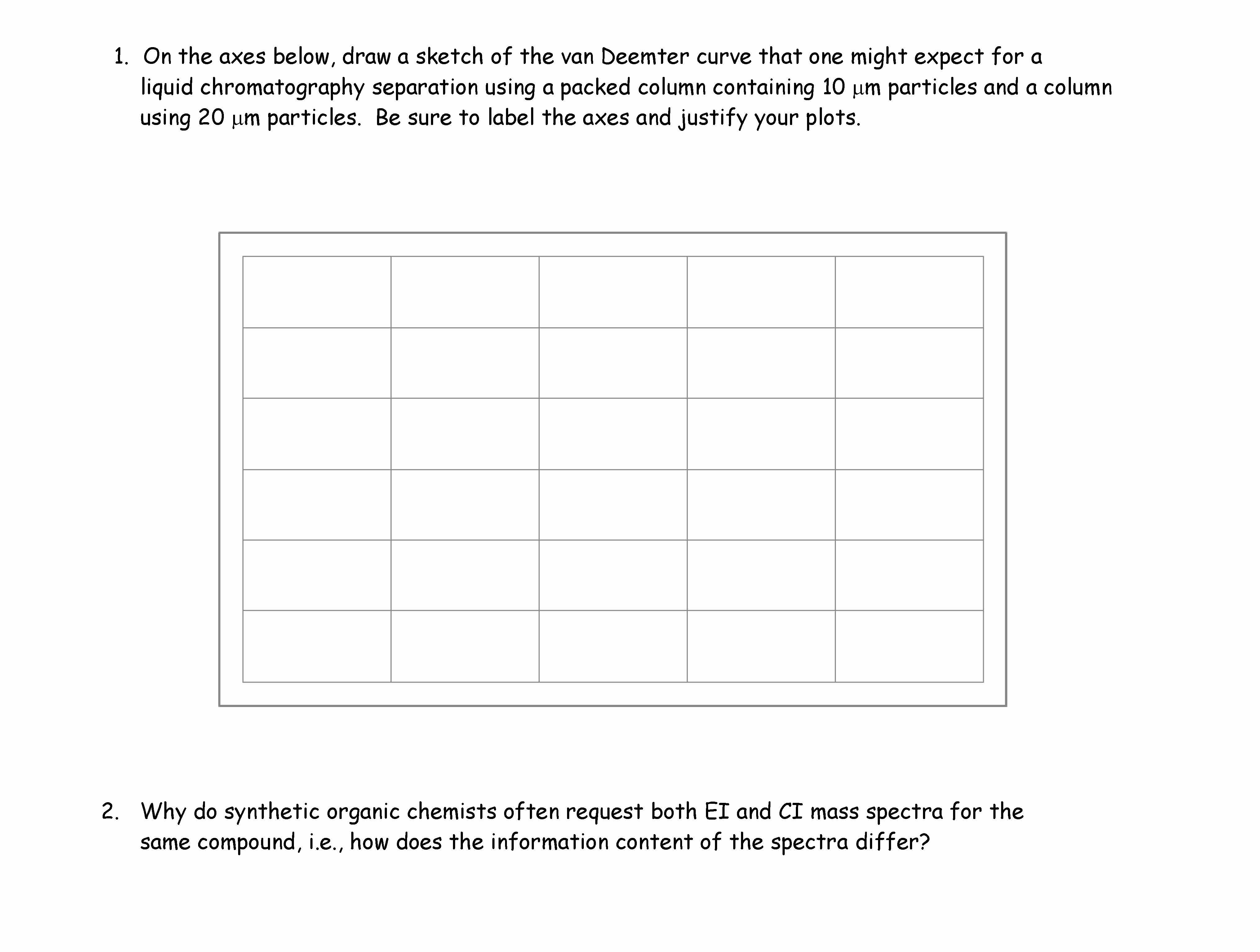1. On the axes below, draw sketch of the von Deemter curve that one...