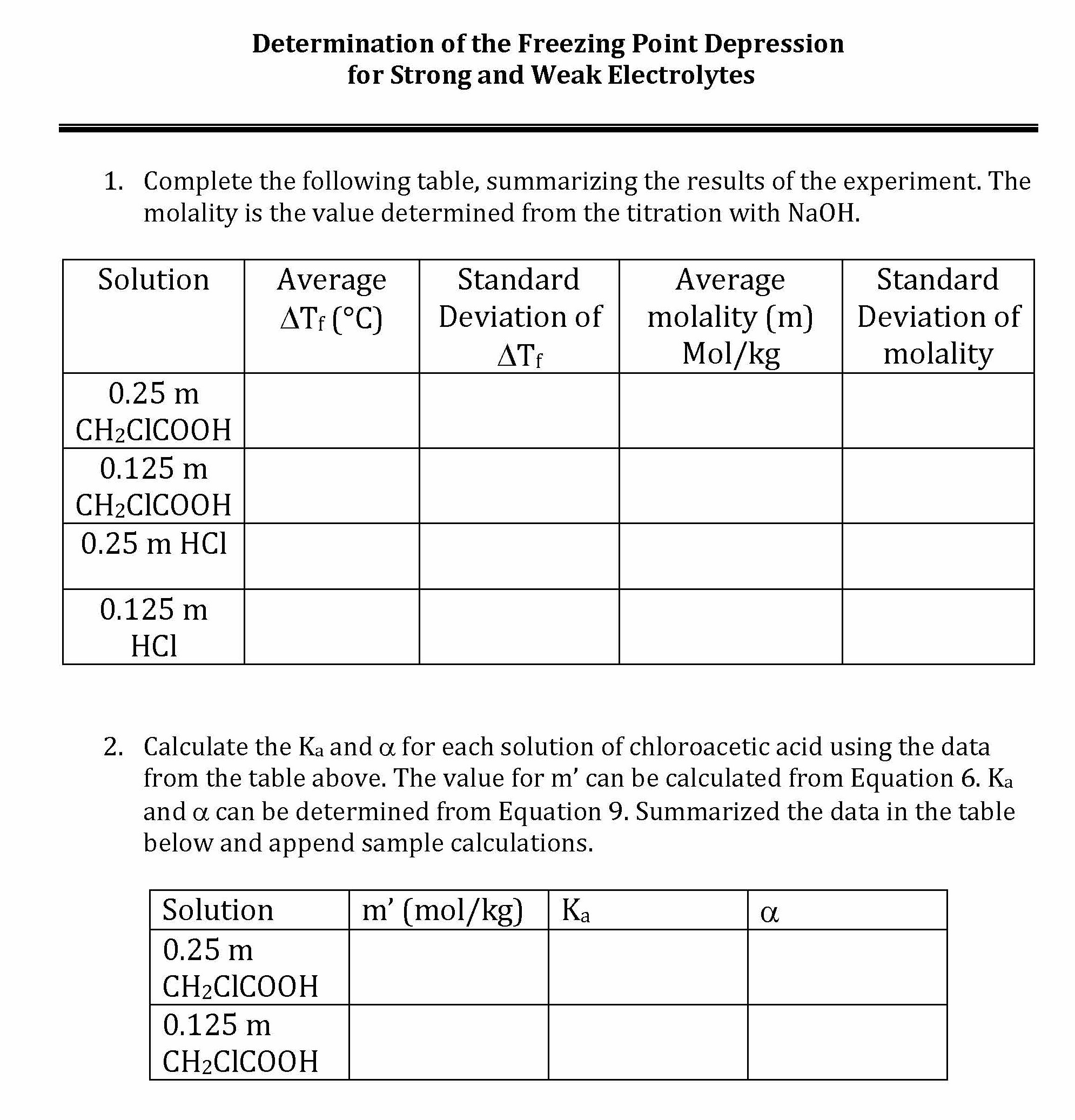 Determination of the Freezing Point Depression for Strong and Weak...