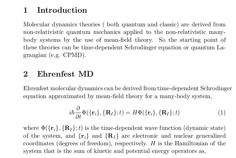 Write a summary of Ehrenfest, Born-Oppenheimer, and Car-Parrinello...