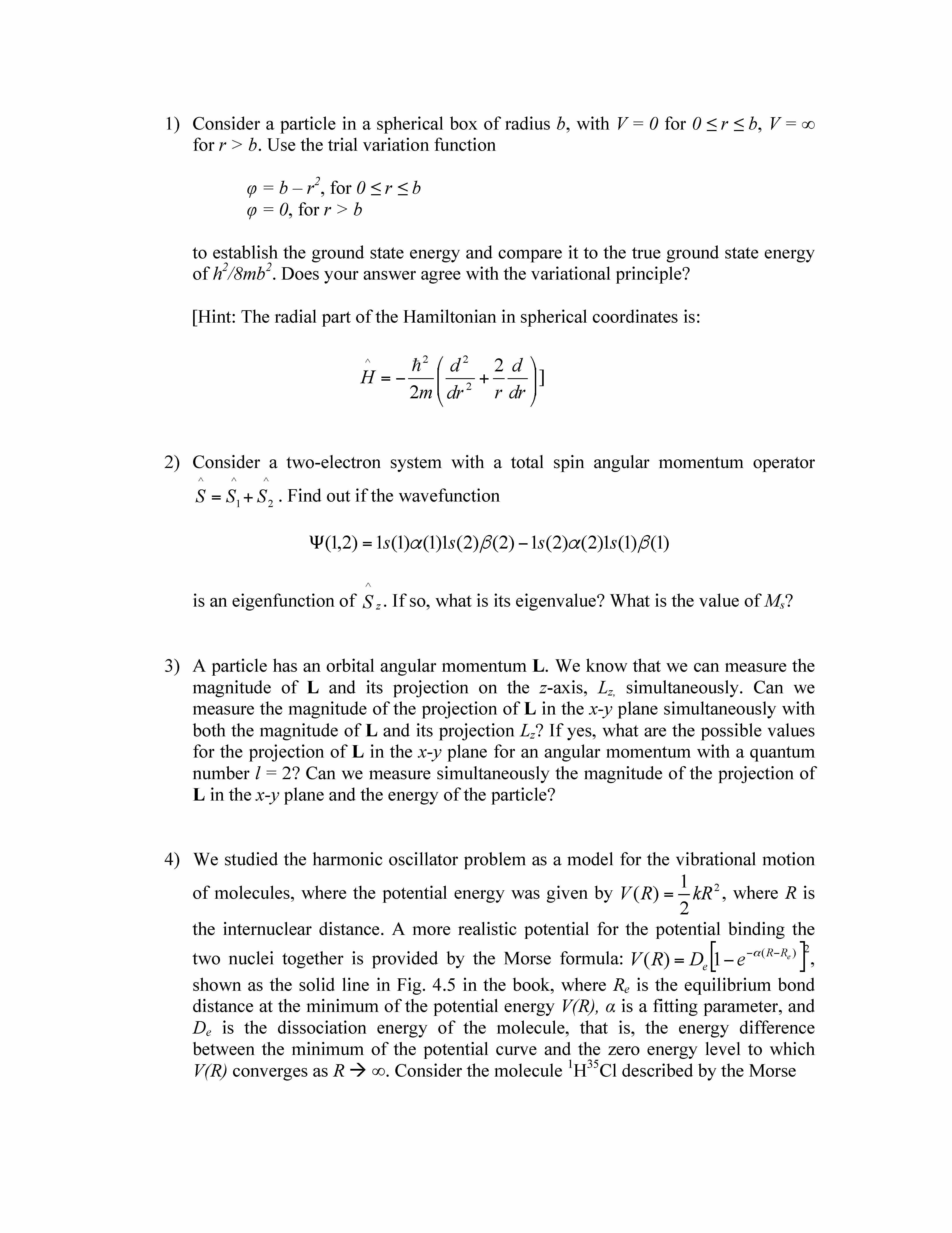 1) Consider a particle in a spherical box of radius b, with V = 0 f...