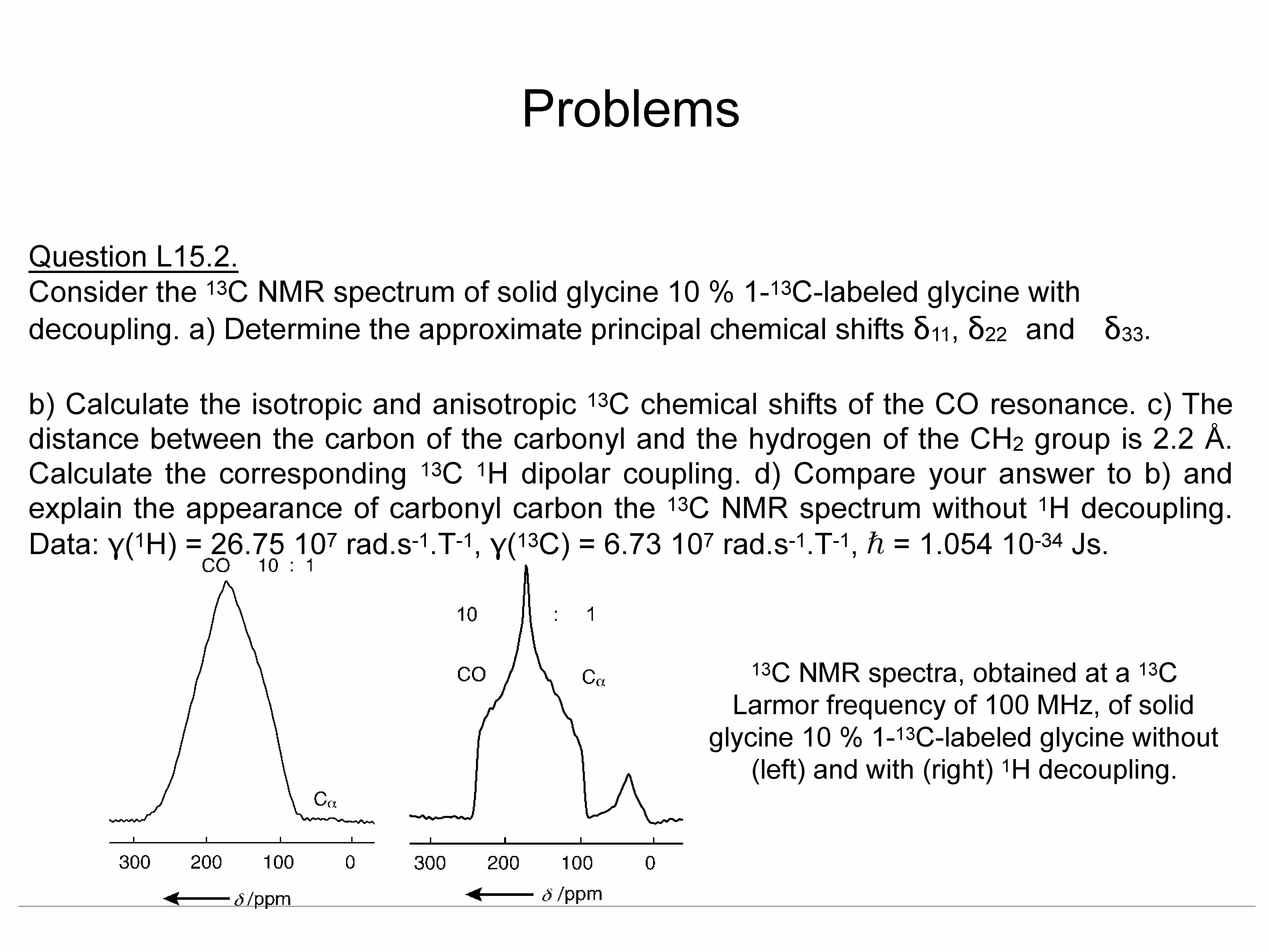 Problems Question L15.2. Consider the 13C NMR spectrum of solid g...