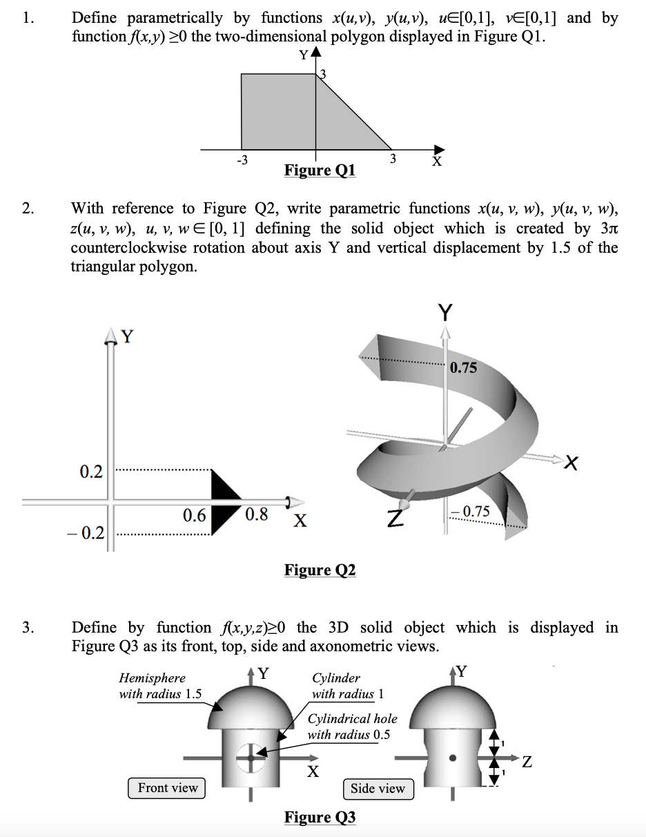 1. Define parametrically by functions y(u.v), u<[0,1], vE[0,1]...