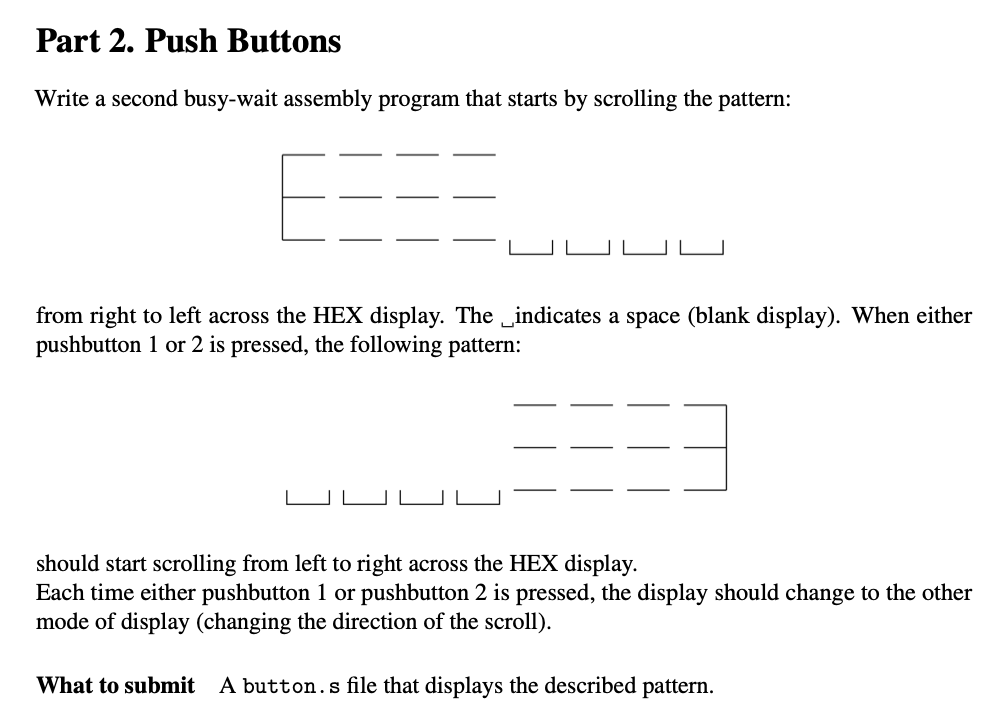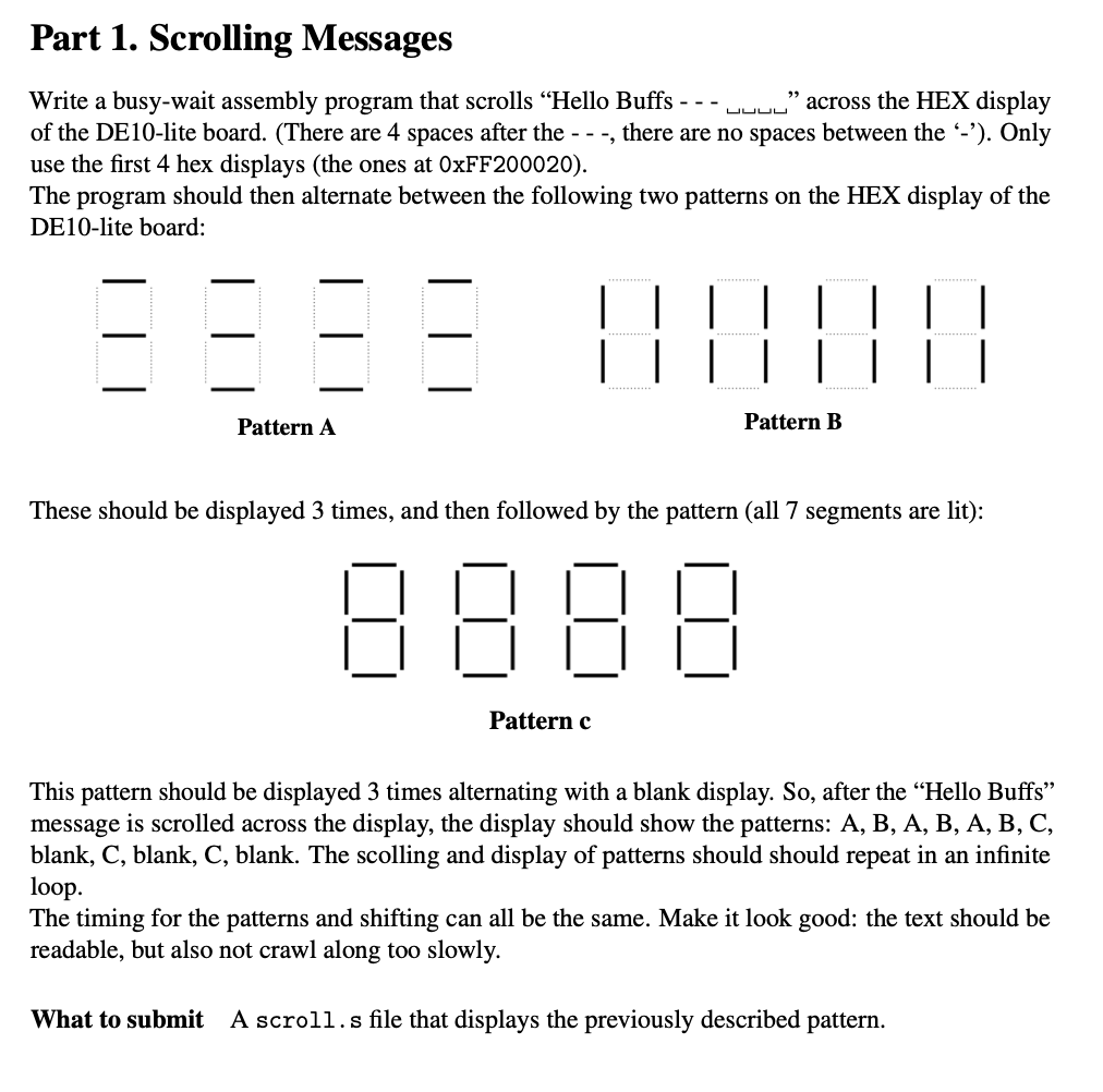 Part 1. Scrolling Messages Write a busy-wait assembly program that...