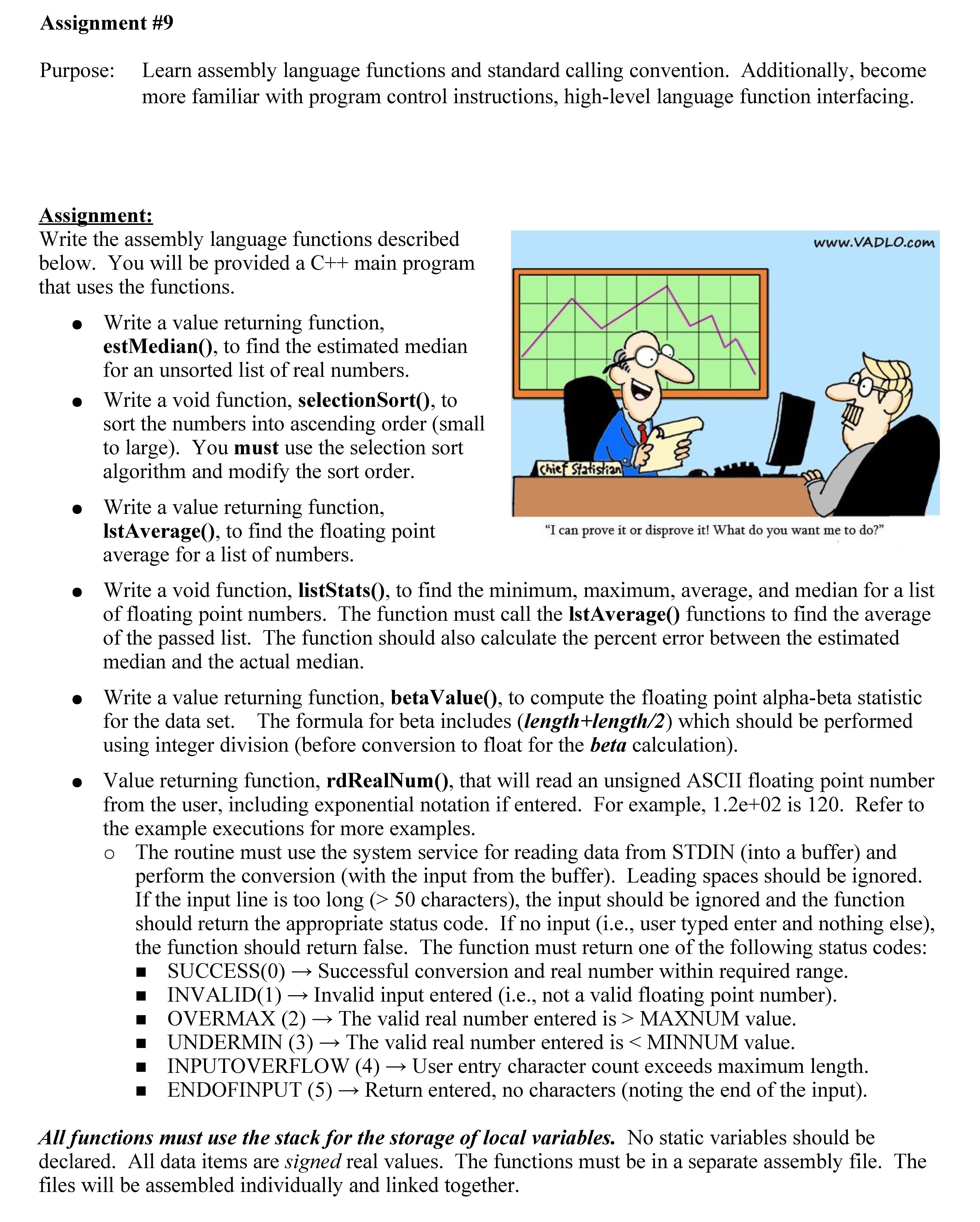 Assignment #9 Purpose: Learn assembly language functions and stand...