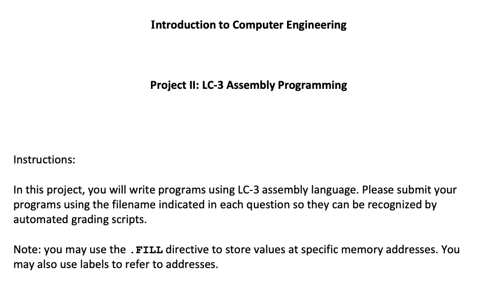 Introduction to Computer Engineering Project II: LC-3 Assembly Pro...