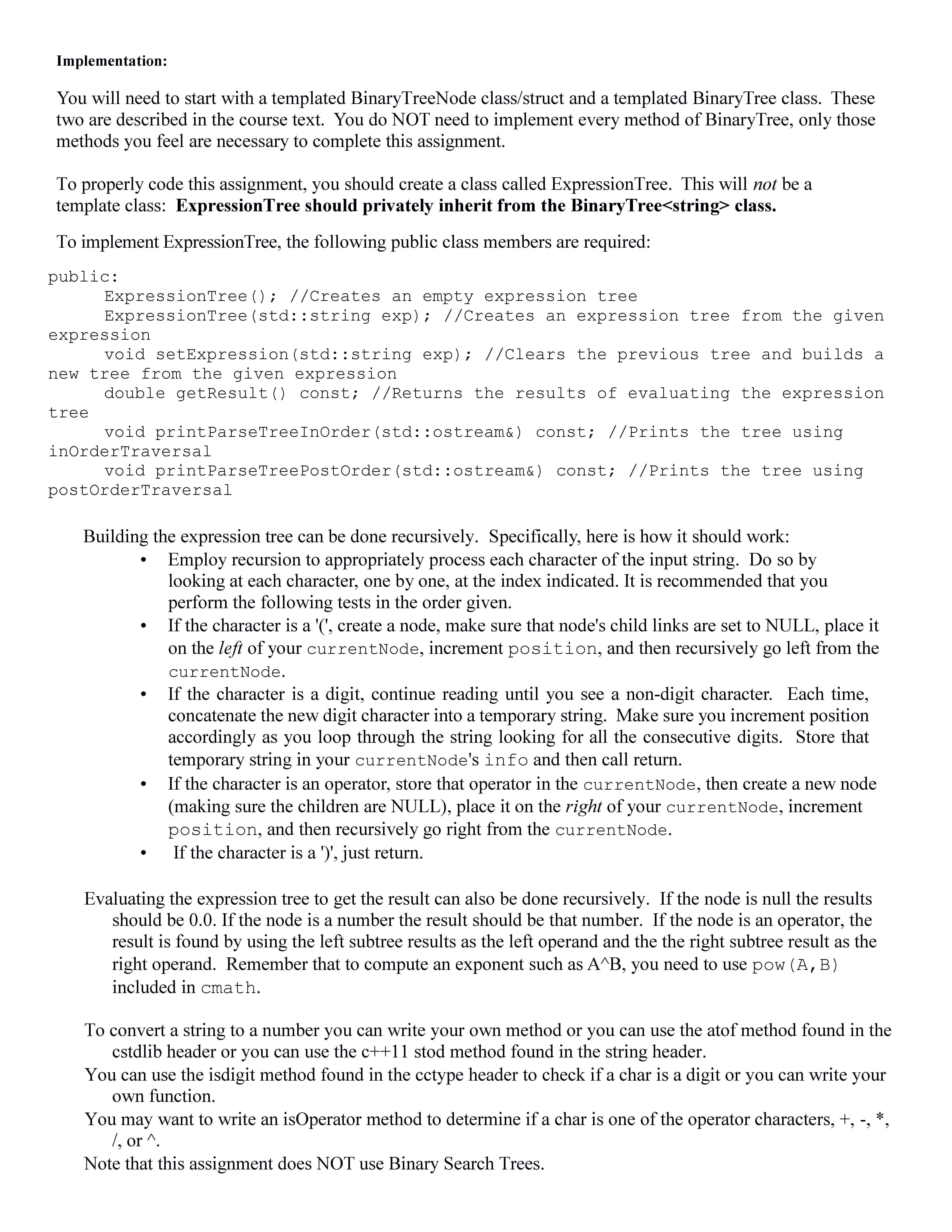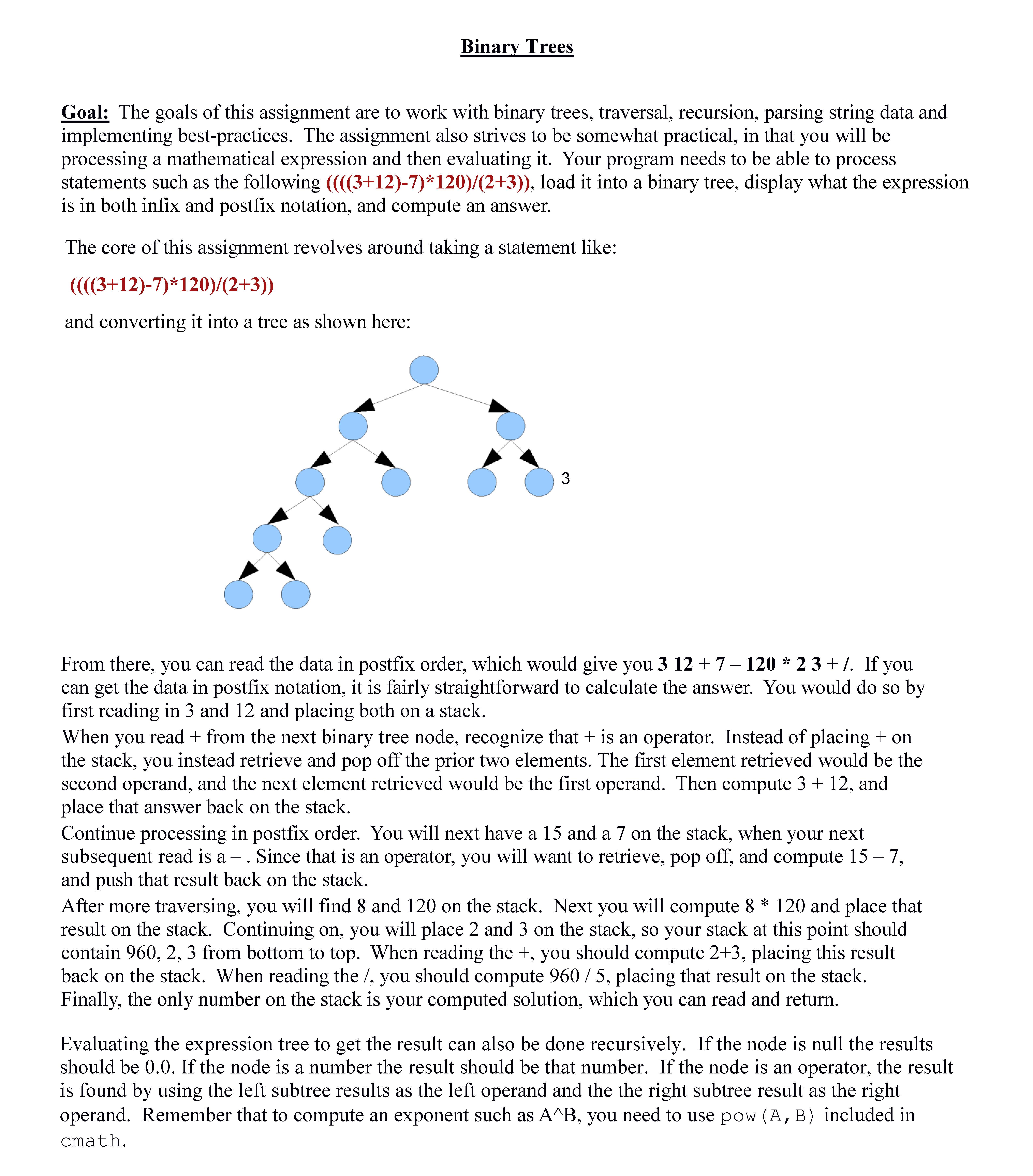 Binary Trees Goal: The goals of this assignment are to work with b...