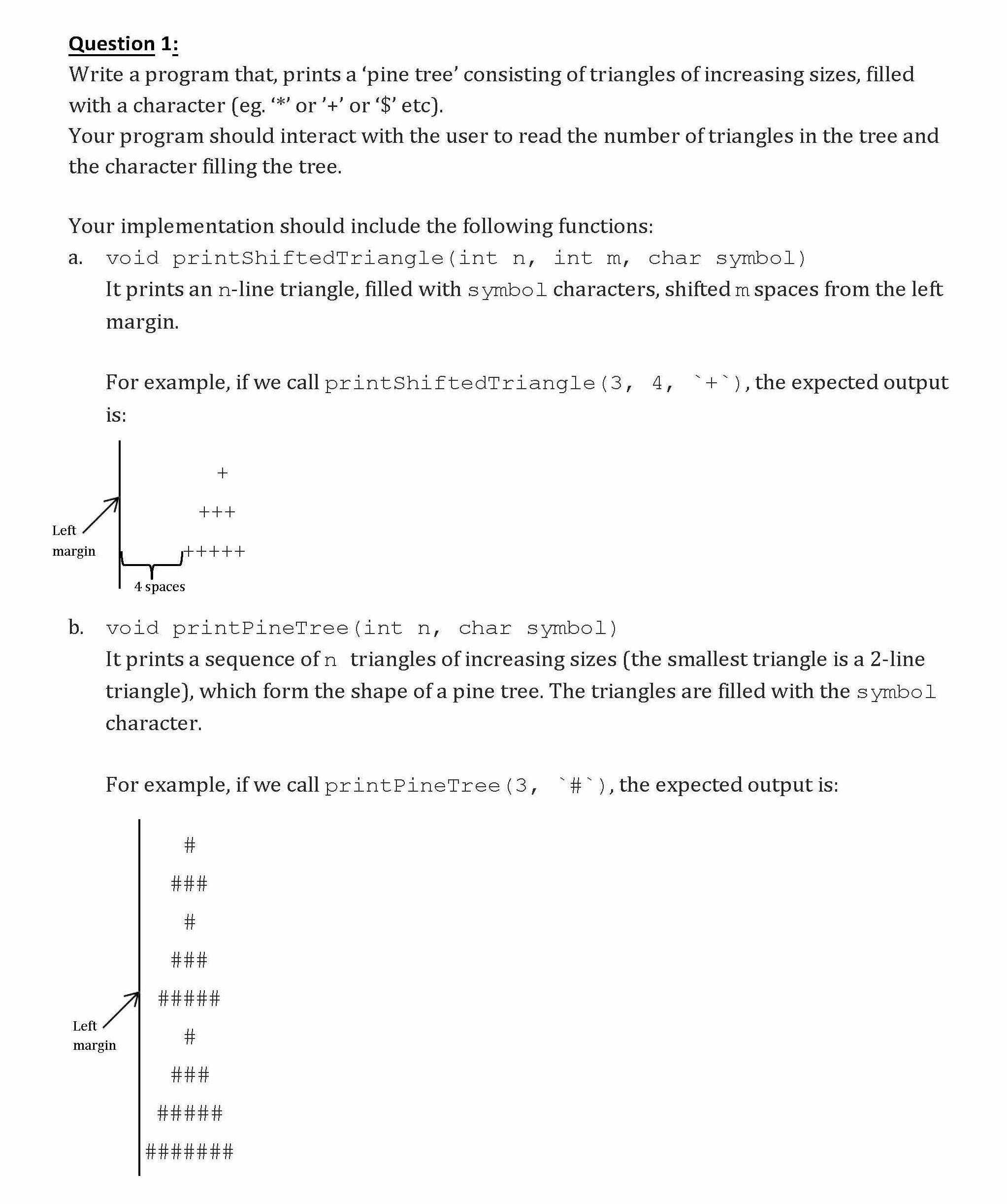 Question 1: Write a program that, prints a 'pine tree' consisting ...