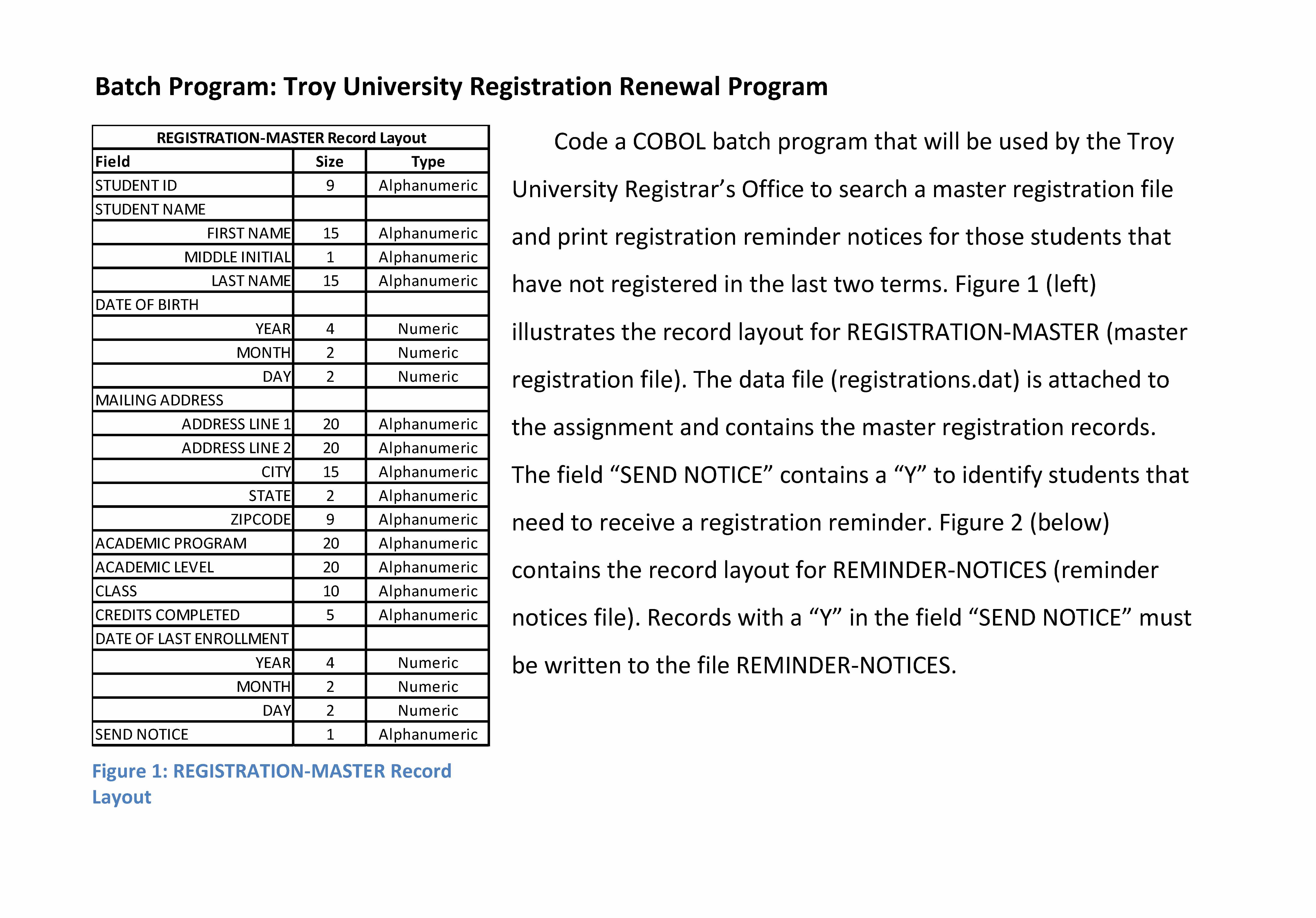 Batch Program: Troy University Registration Renewal Program REGIST...