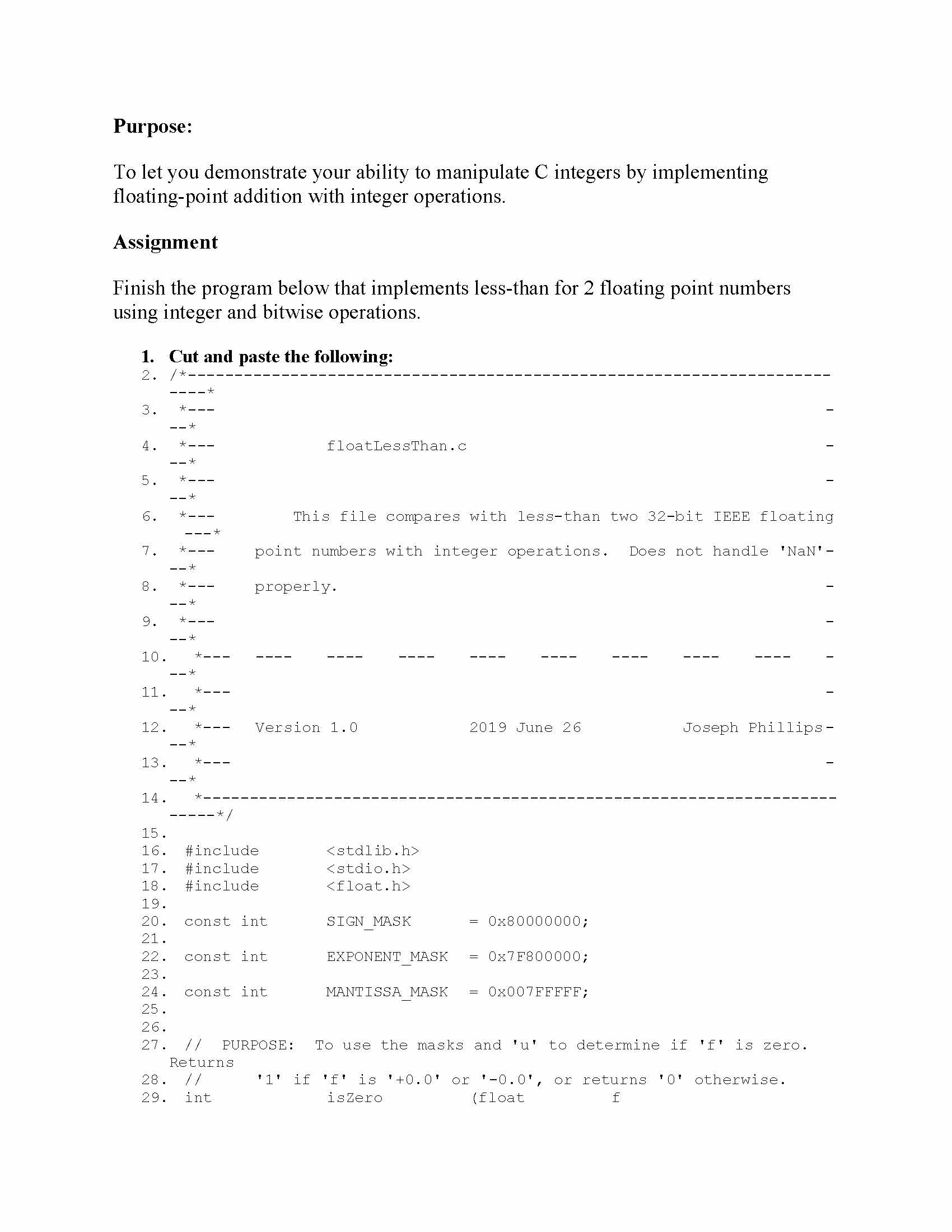 Purpose: To let you demonstrate your ability to manipulate C integ...