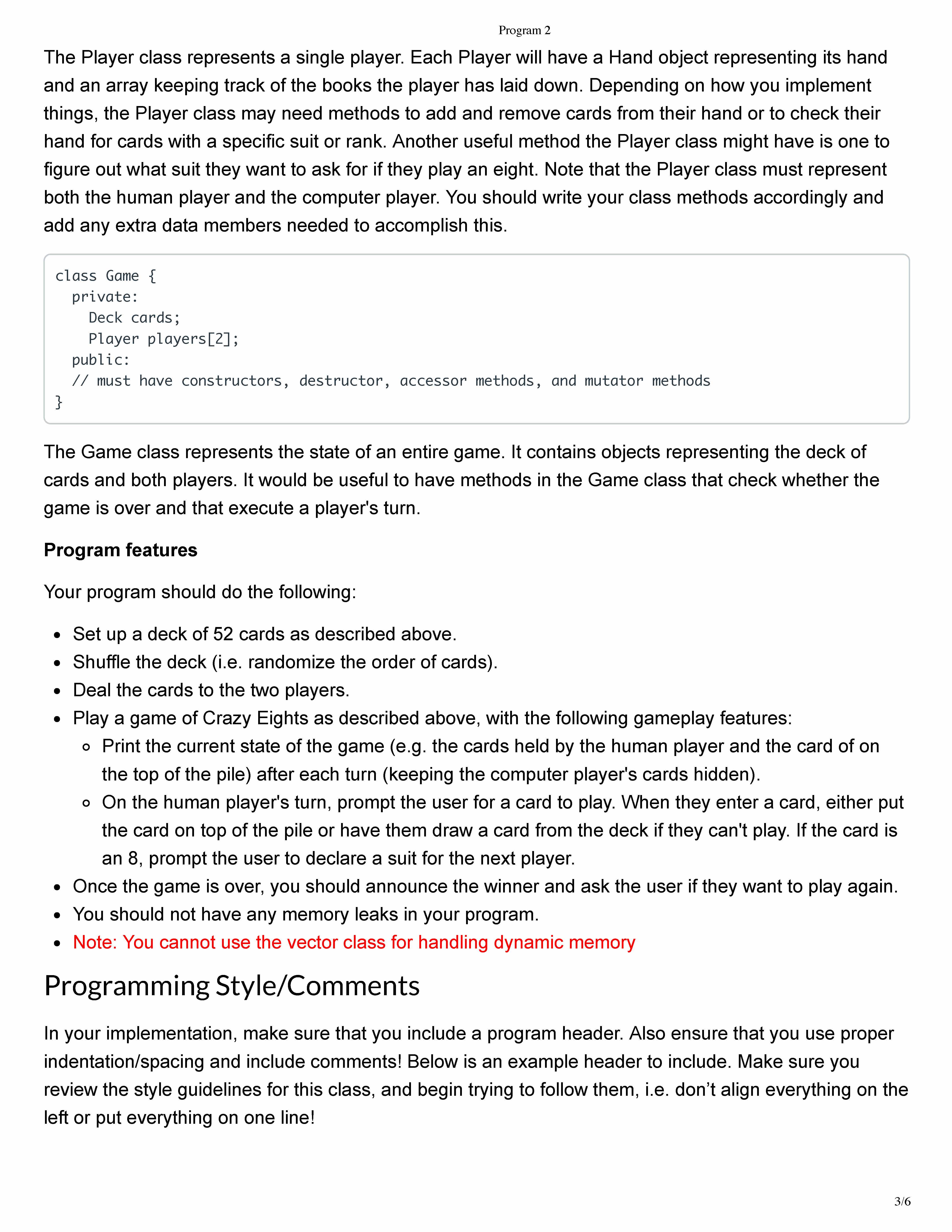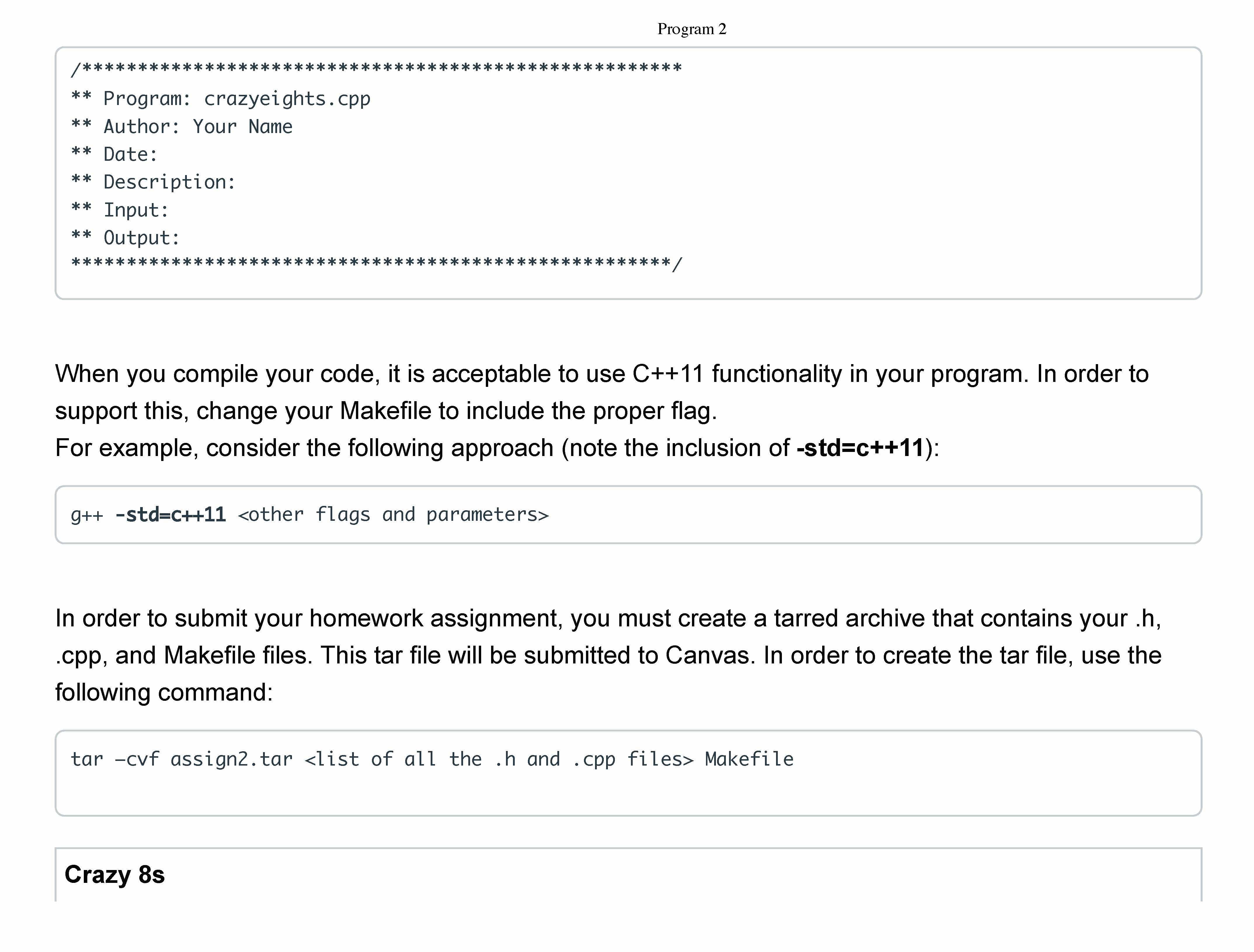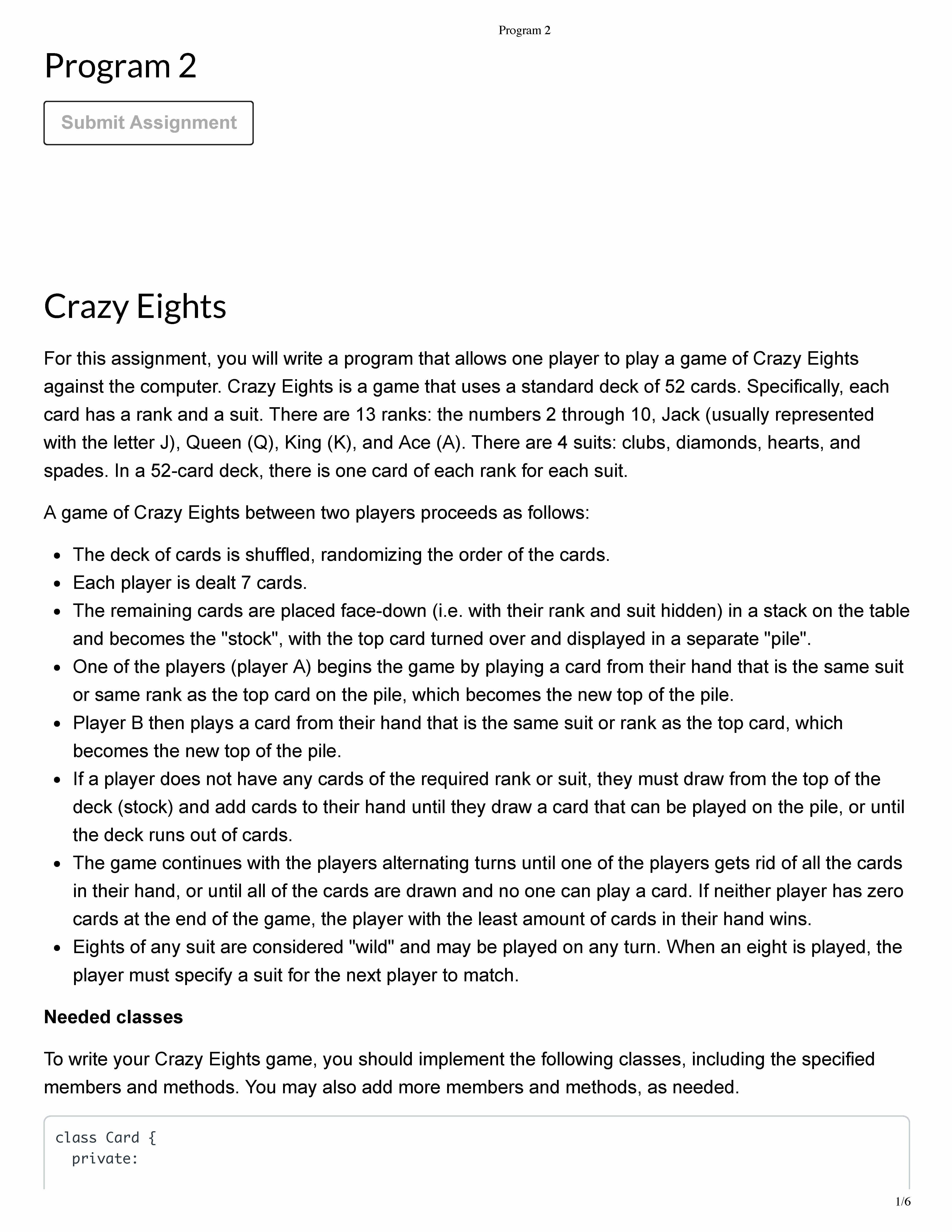 Program 2 Submit Assignment Crazy Eights For this assignment, yo...