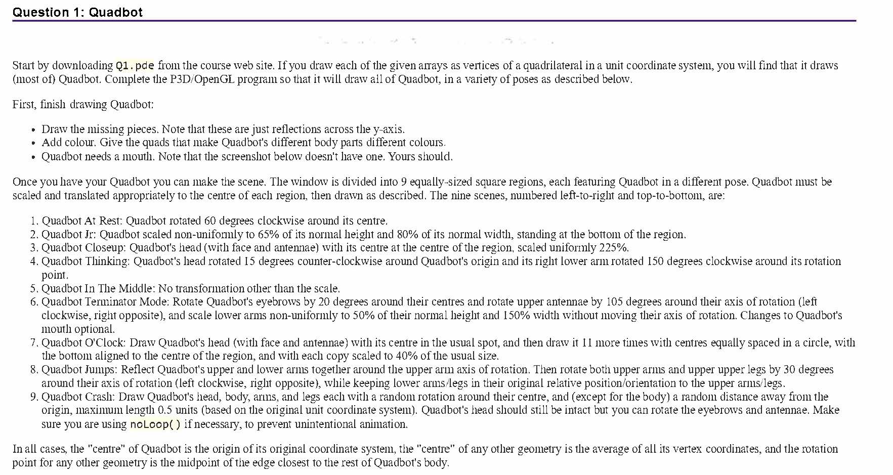 Question 1: Quadbot Sta1t by downloading Ql. pde from the course w...