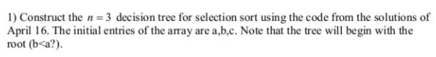 1) Construct the n = 3 decision tree for selection sort using the c...