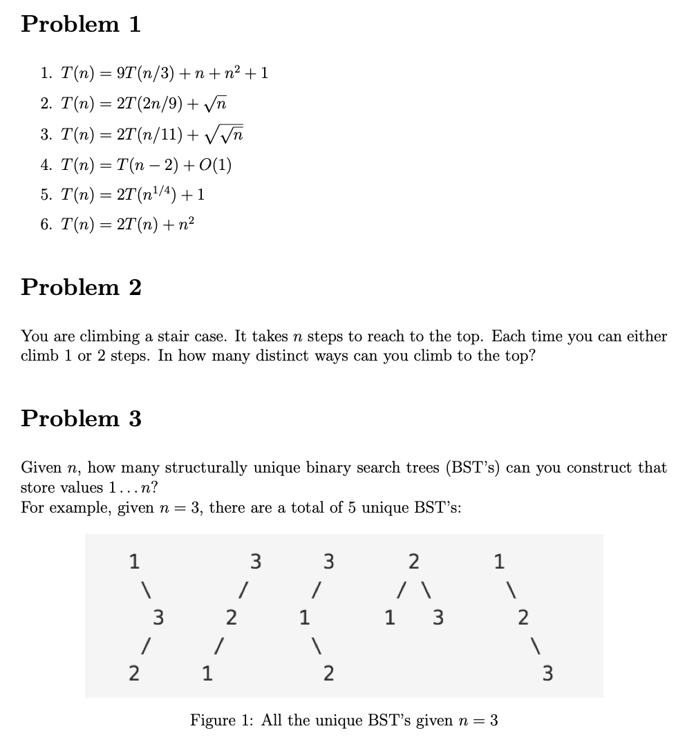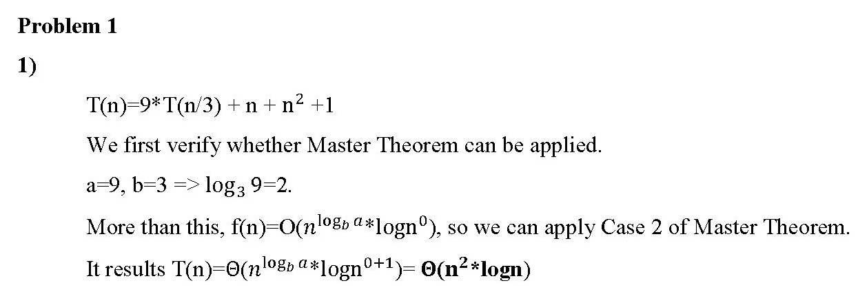 Problem 1 1. T(n) = 9T(n/3) + n + n 2 + 1 2. T(n) = 2T(2n/9) + â...
