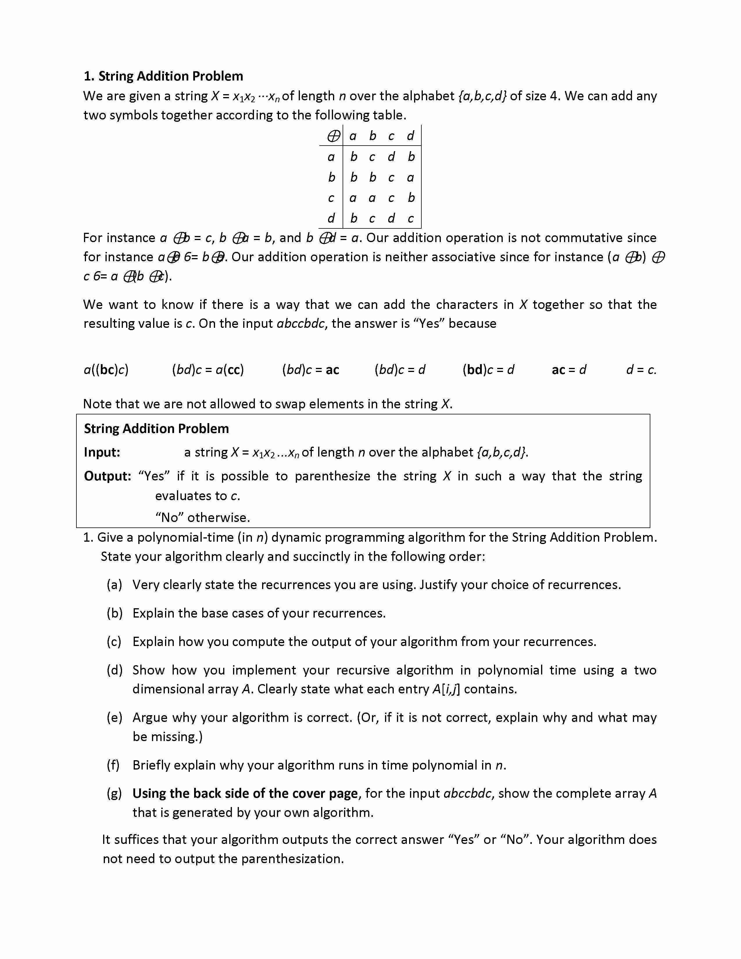 1. String Addition Problem We are given a string X = x1x2 ··...