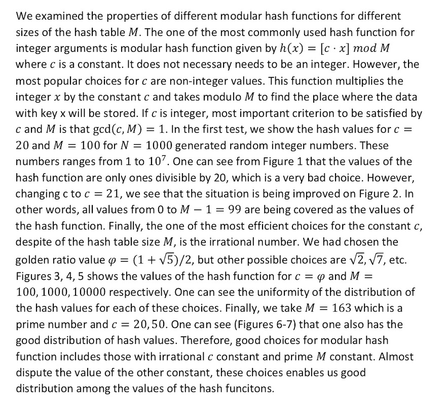 1. Generate 1,000 random integer numbers. 2. Come up with a hash...