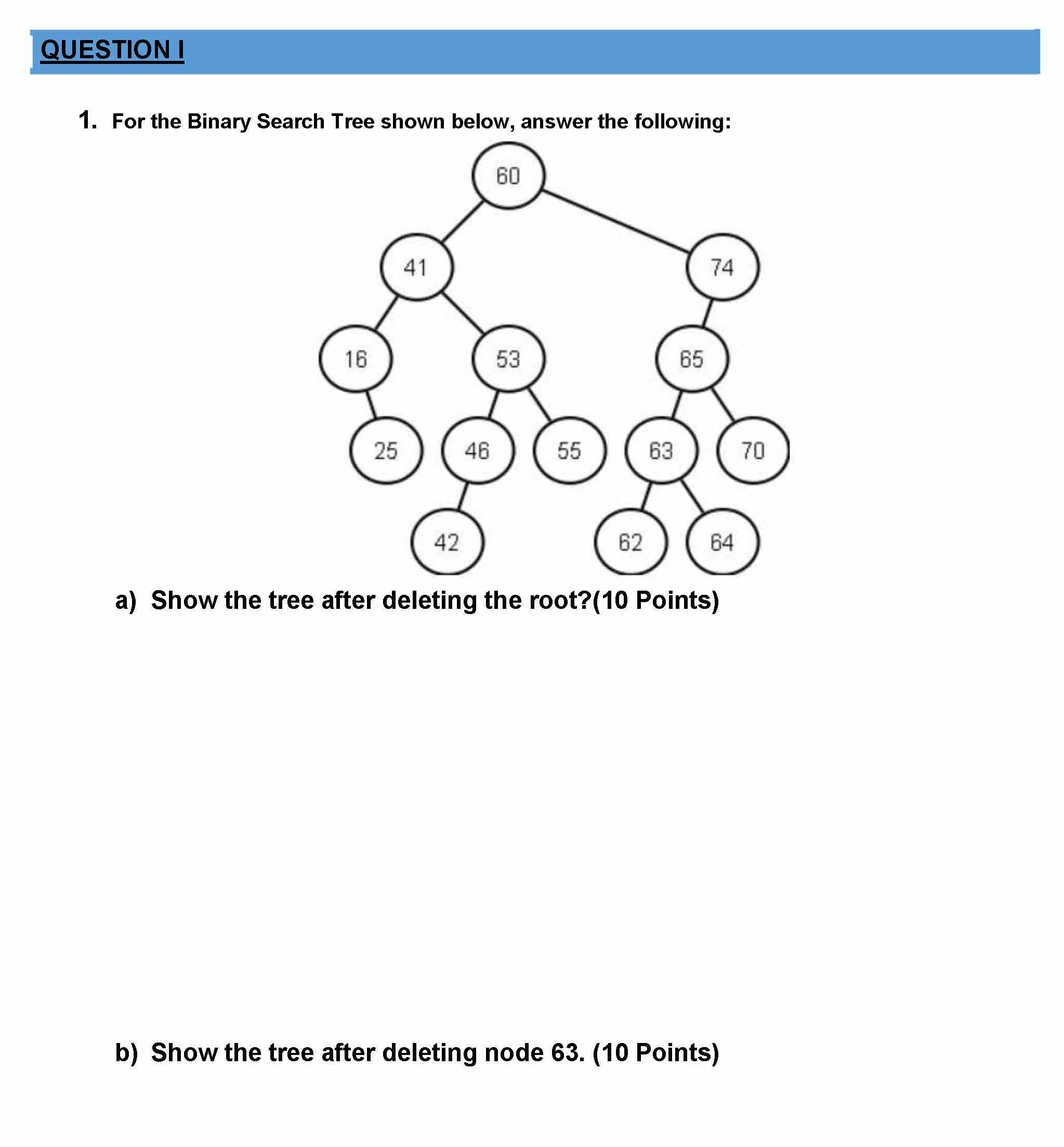 QUESTION I 1. For the Binary Search Tree shown below, answer the f...