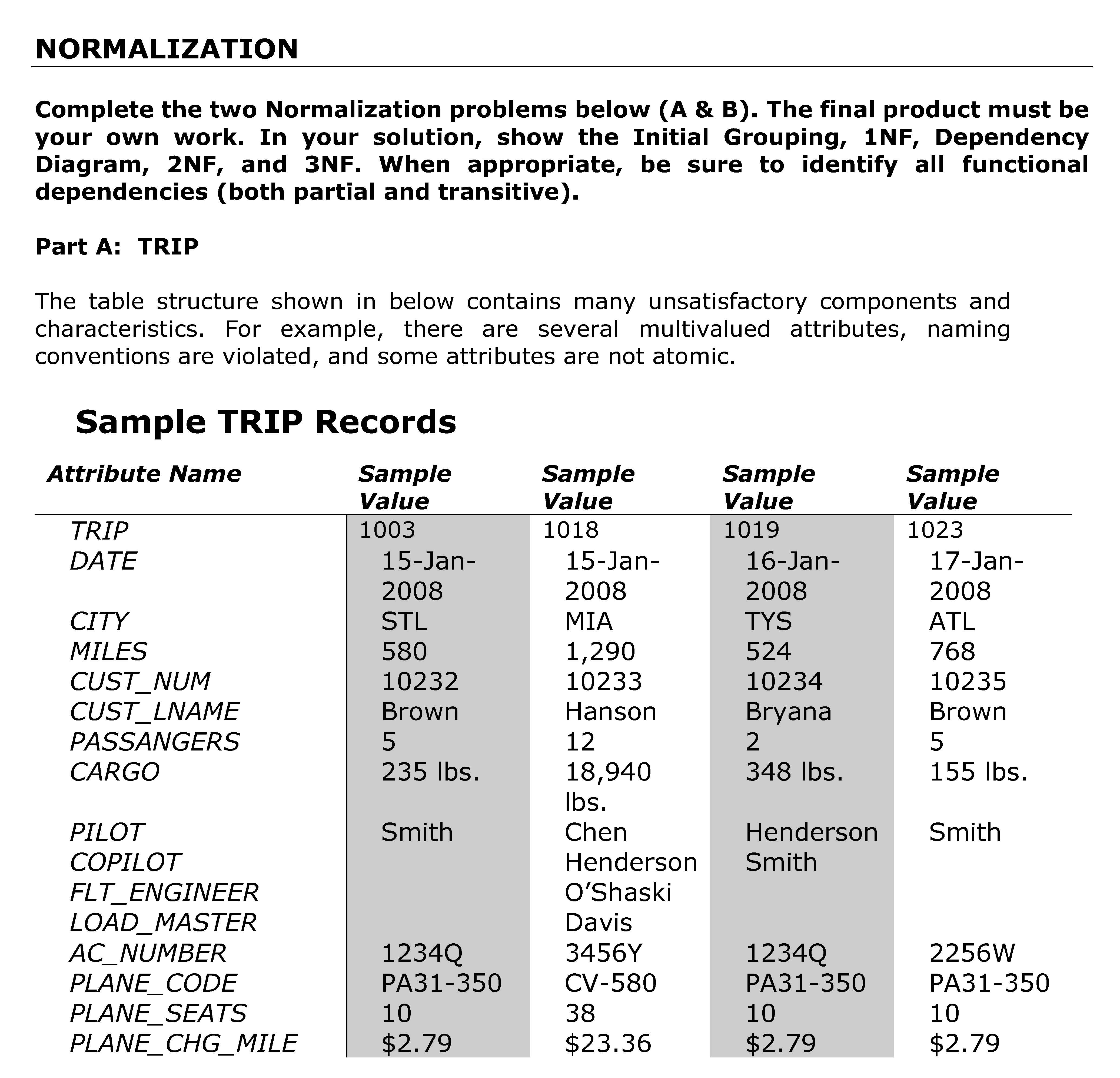 NORMALIZATION Complete the two Normalization problems below (A &am...