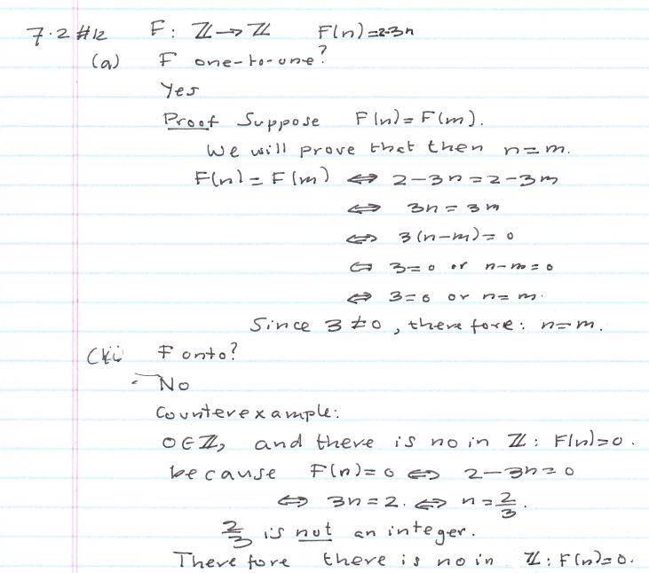 Section 7.2: #12 (a) Define F: Z->Z by the rule F(n) = 2-3n...