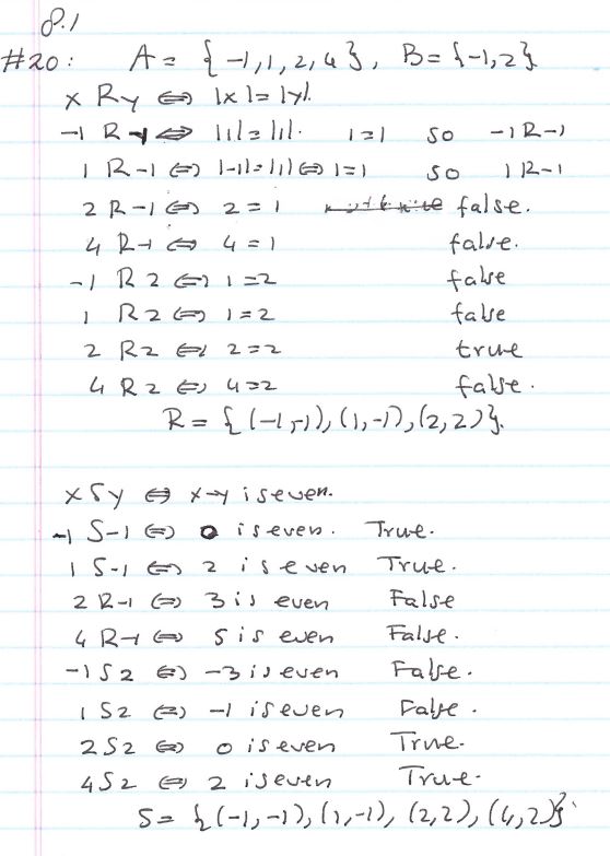 Section 8.1 #20 Let A={-1,1,2,4} and B={1,2} a,d define relat...