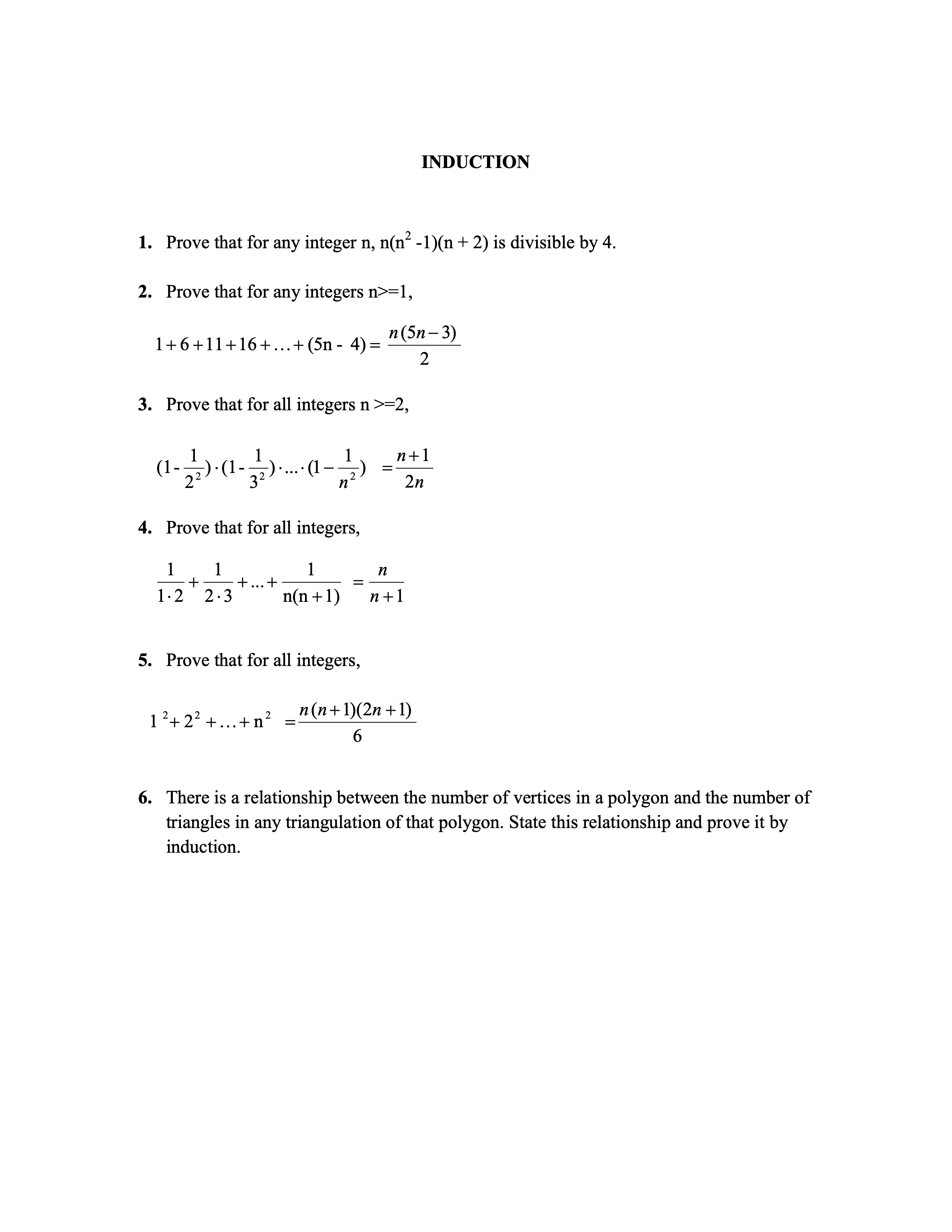 INDUCTION 1. Prove that for any integer n, n(n2-1)(n+ 2) is divisi...