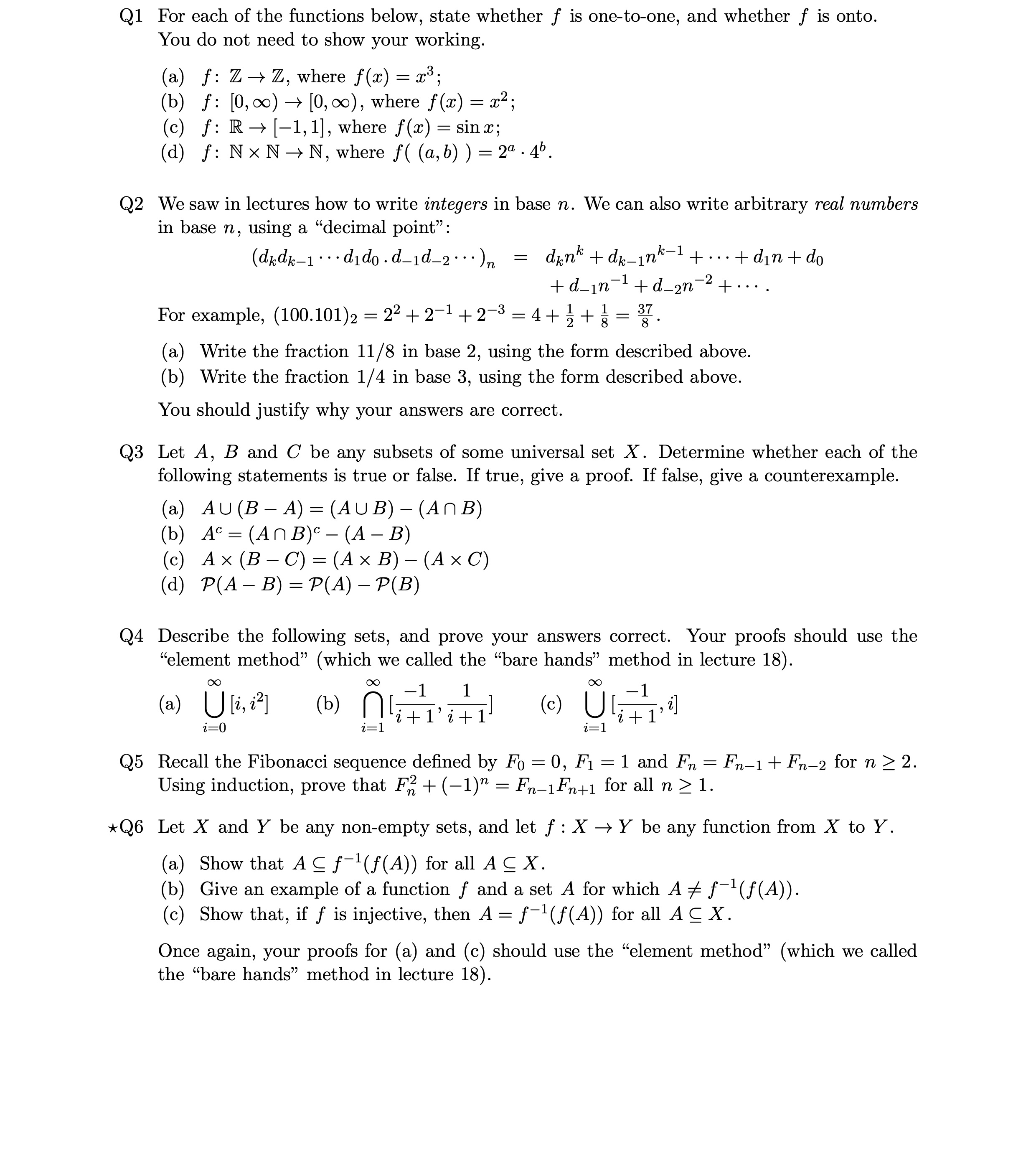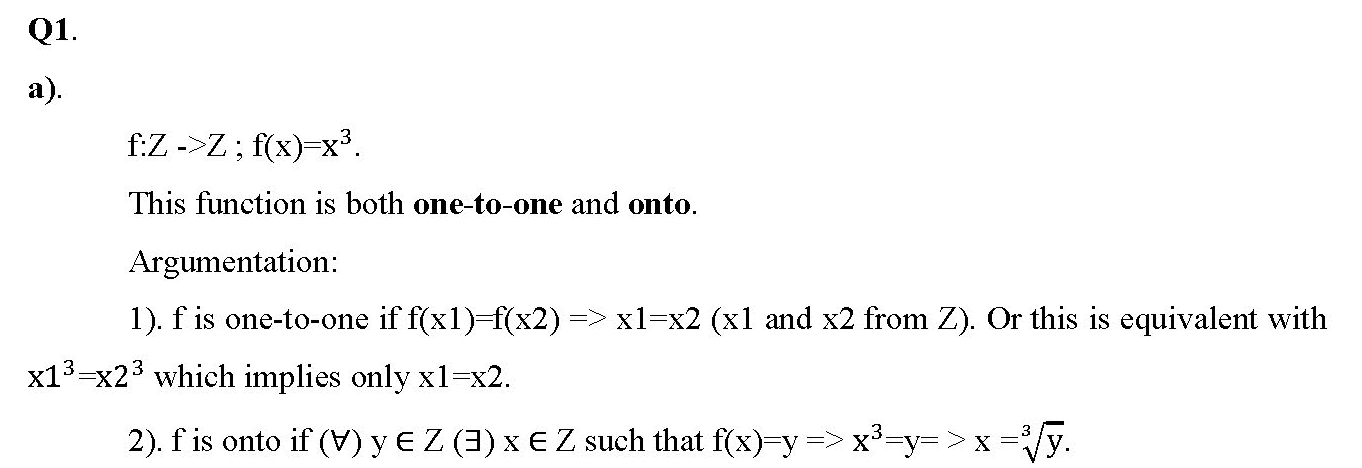 Q1 For each of the functions below. state whether f is one-to-one, ...